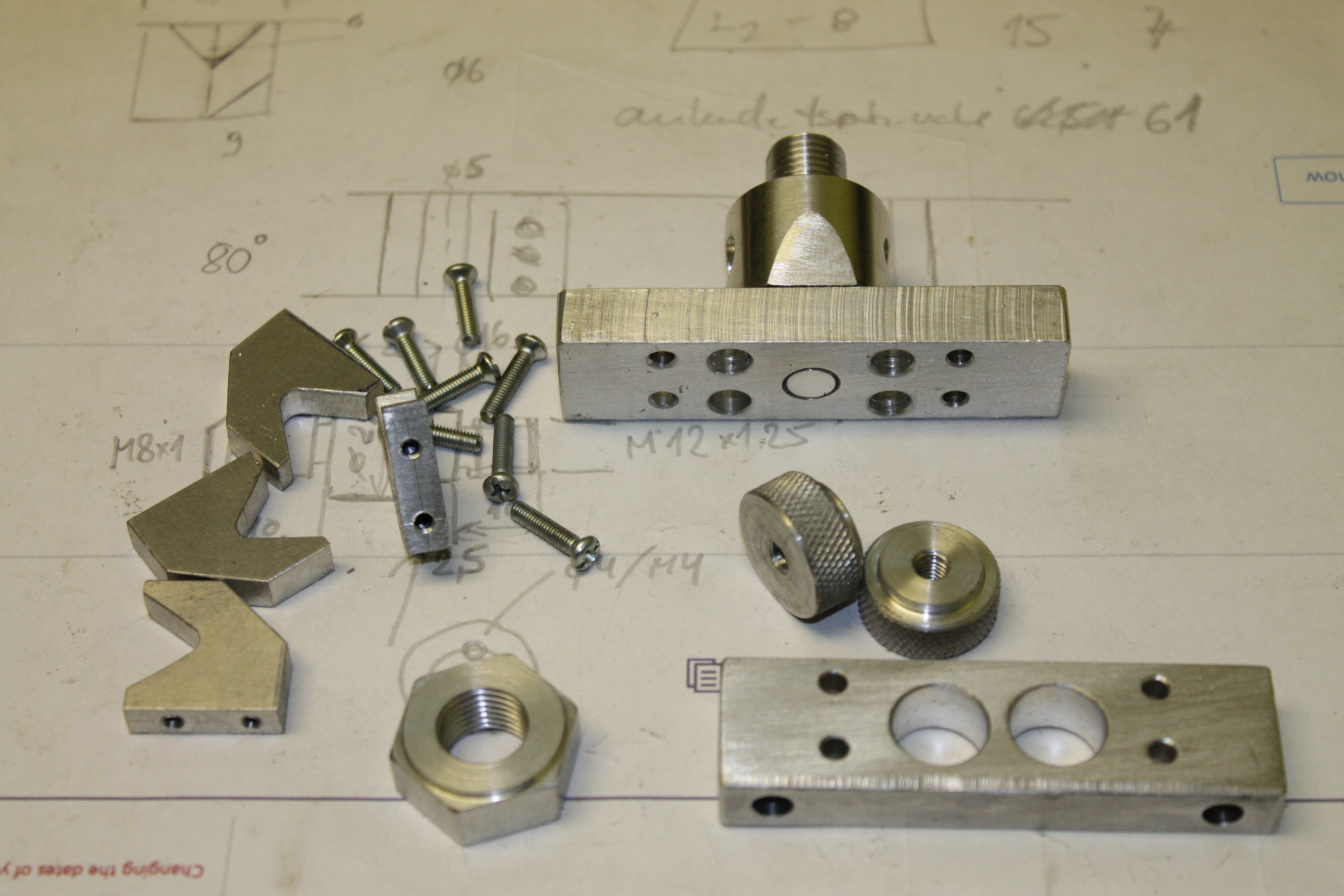 Hiljuti sai tugevamat sorti hoidja tehtud kehvadele teedele, inspiratsiooni sain fotograafias kasutatavatest klambritest. Materjal duralumiiniumi jäätmed. Mul on kasutada trei- ja puurpink, samas saab sarnase ka kruustangide, rauasae ja trelliga tehtud.