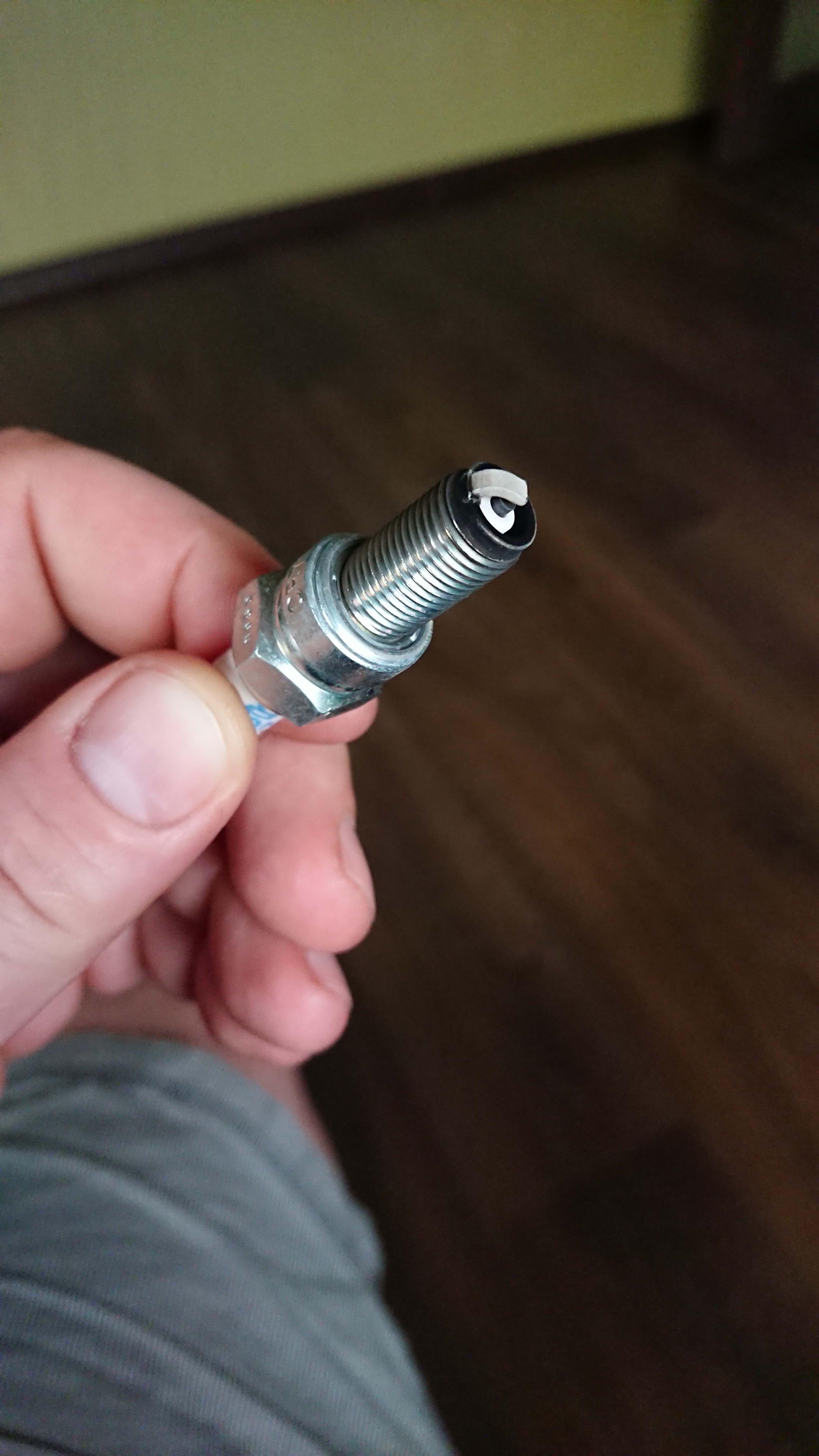 Olles nüüd esimesed 400 km maha sõitnud, viskasin lisaks õlitasemele, ketipingsusele jms pilgu peale ka küünlale ja pilt on järgnev: