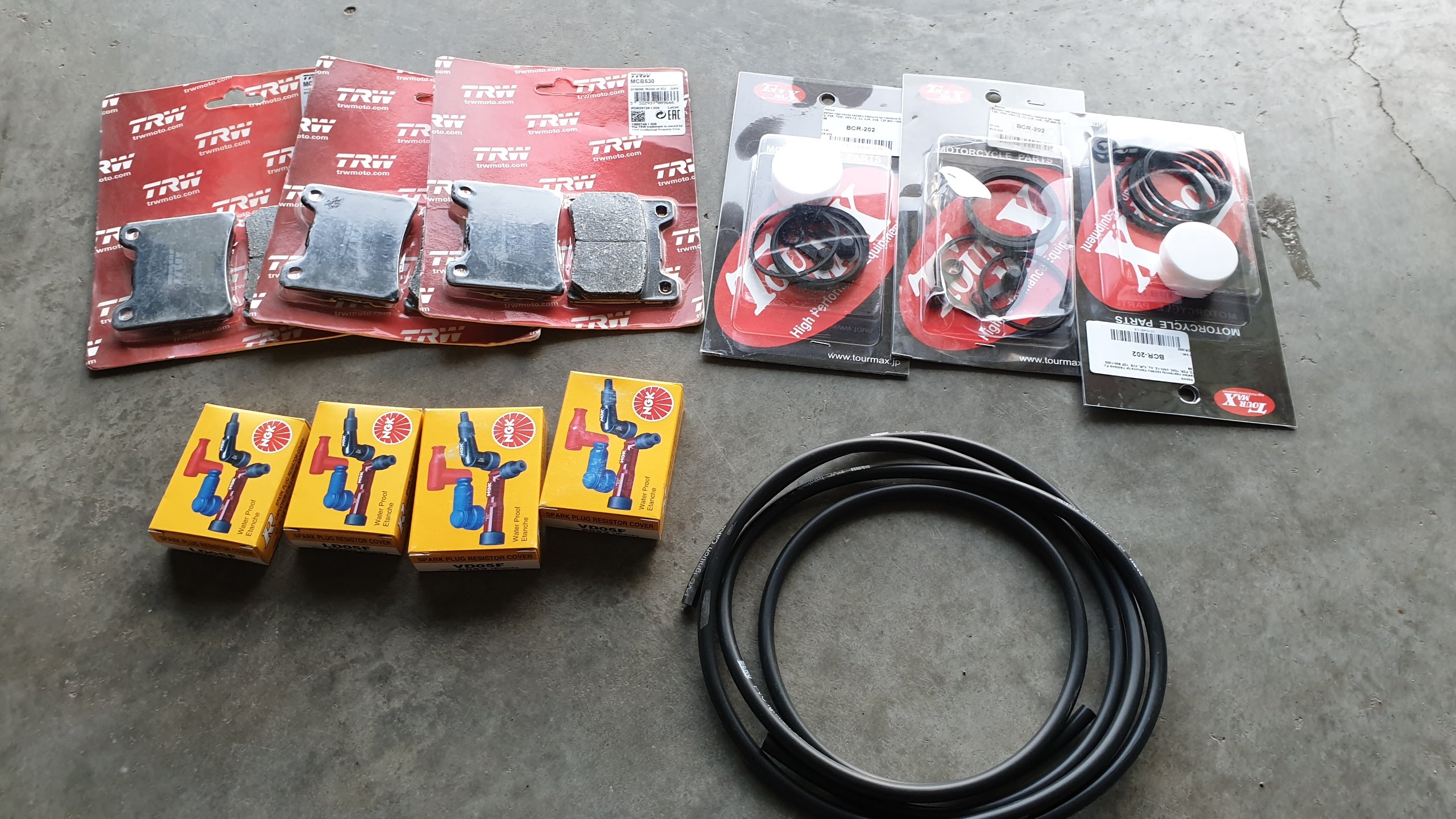 Enne puhkusele minekut said poodi külastatud ning mõned vajaminevatest asjadest ostetud: kõik uued piibud, uued küünlajuhtmed, piduriklotsid ja pidurisadulate remontkomplektid.