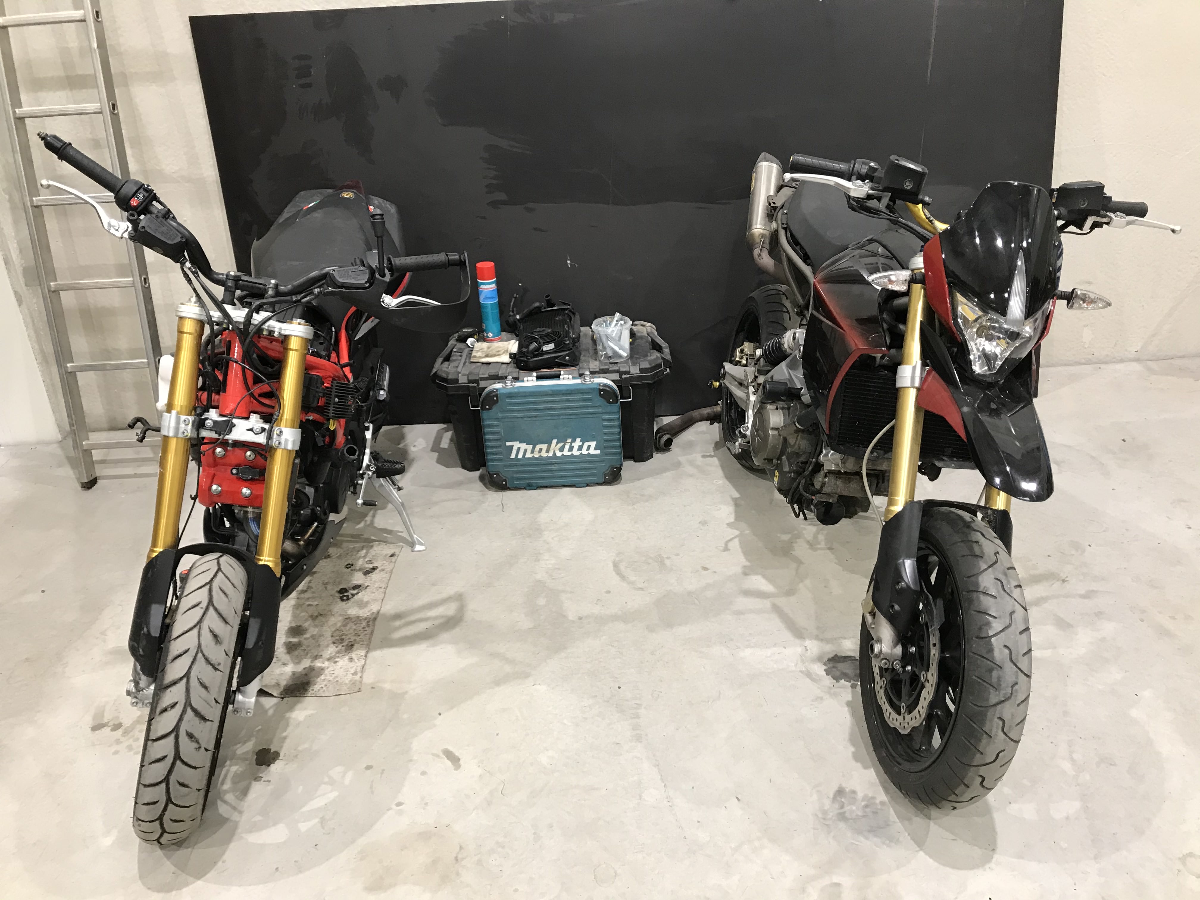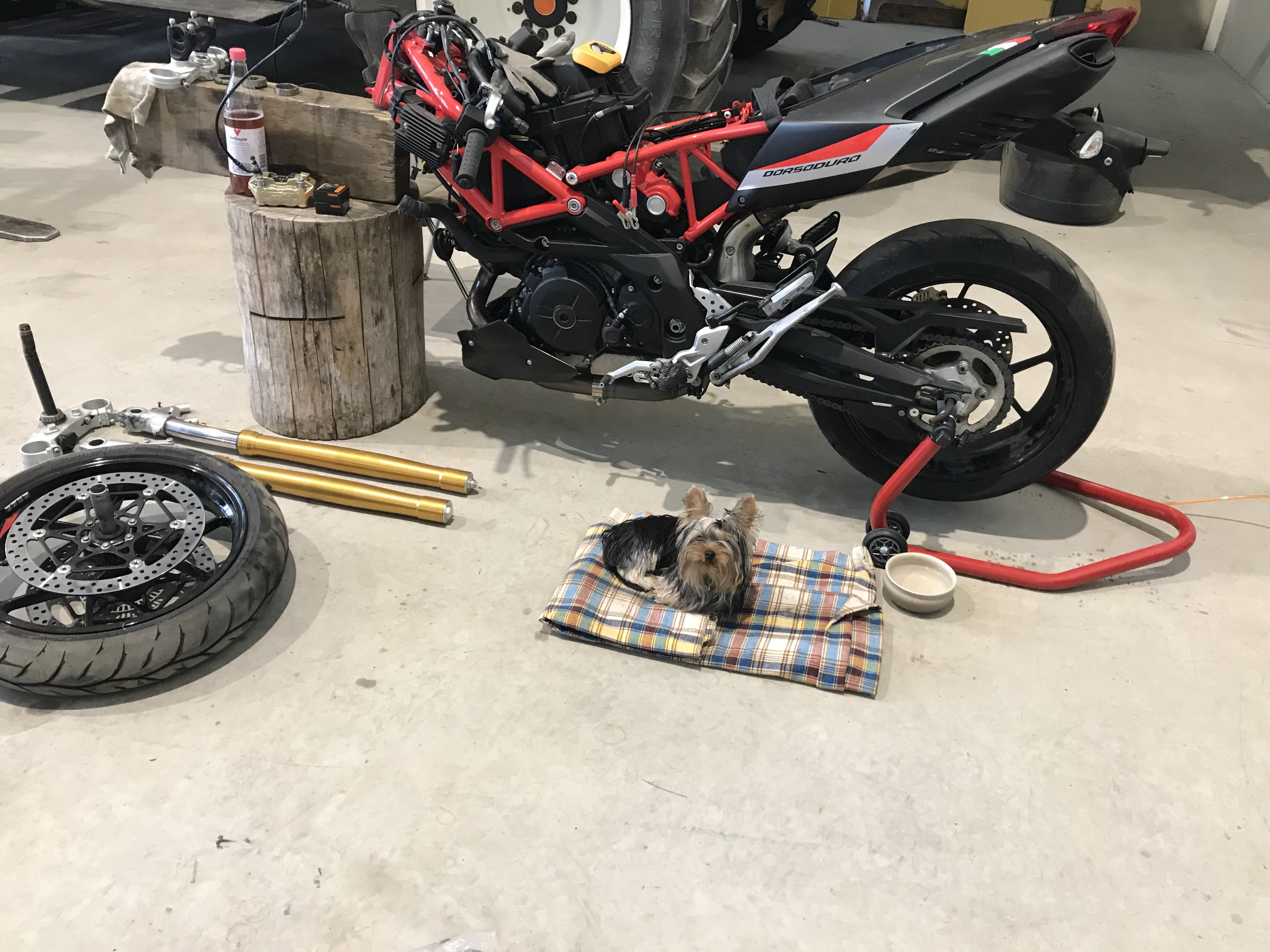 Tegin eelmise aasta suvel A-kat load ära ja tõin Lätist ehku peale Dorsoduro 750. Samal ajal oli käimas saksamaal oksjon, mille ka võitsin ja joppas kätte 10 aastat uuem masin Dorsoduro 900.