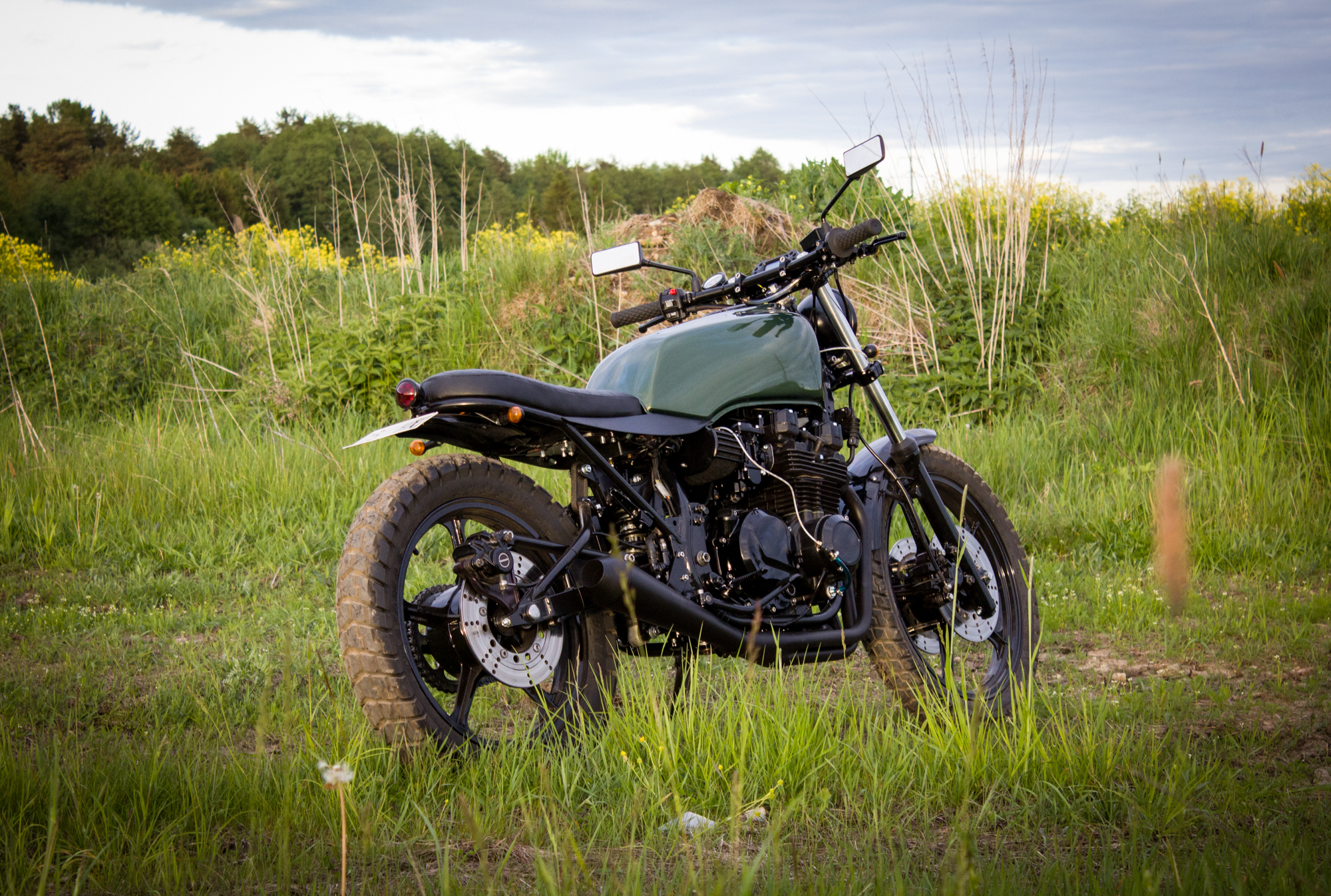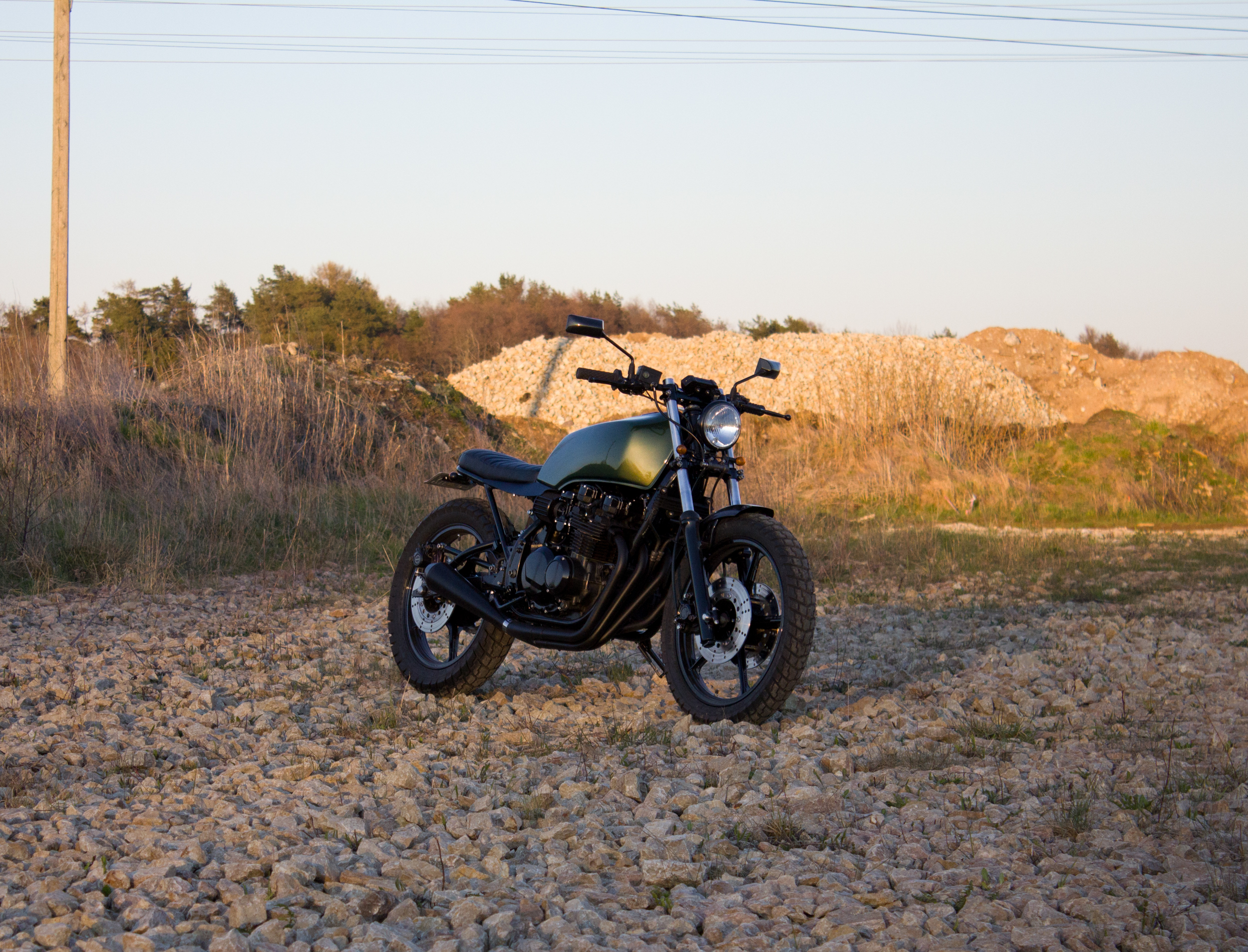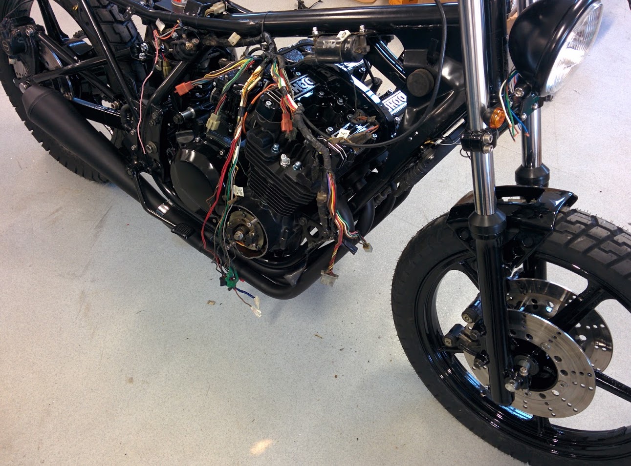 Vaikselt tuhast tõusmas, taas. Paagitoorikuga tööd jagus, oli pindmist roostet ja mõlgikesi. Muist haljaks ja happekrundi alla, embleemide kinnitusraamide süvendid said tasa pahteldatud + siin seal mõlgid, aga sai hea. Uus pütt ja magneeto rootor + kaas, kone käib õnneks kenasti, sound uuel pütil veidi mahedamgi, natuke vatti ka sees, lisaks käib tagaots ära - saab maitsele vastavalt timmida hiljem. Sai veidi teistsugune esituli pandud, tuli teha uus kinnituskronstein. Sabaraam taas uppi aetud, natuke rohkemgi kui varem - natuke lisaruumi tagavedrustusele, sai paindekoht ka veidi tugevamaks keevitatud. Lenks hetkel toores straightbar, kuni uus drag bar kohal, lenksul uus gaasirutska (sai veidi kobakas, eks hiljem vangerdab) ning seekord Zephyr 550 pealt piduripump + pumba ja "harukarbi" vaheline pidurivoolik, vanal oli pumba juures rõve järsk paine sees, ei julgenud taaskasutada. Numbrimärk kolis tagaratta äärde ning sai ka numbrivalguse.Jõudsid kohale ja külge ka mikihiirte peeglid. Pisiasju veel nokkida, ette katsetan lisada väiksetuulelapatsi ning saba alla ka väike porilapakas, et sopp otse elektroonikale ei lendaks, sabaelekter saab ka natuke parema vormistuse. Oodata postist veel jalarauad, parempoolne murdus ära
