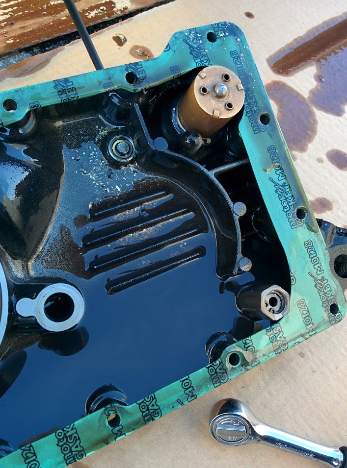 Hulka uusi tihendeid, uued vedrud nukaketipingutis + uus primaarkett - tühikäigul pole enam vana Kawa laginat, kusjuures vana veninud primaarketiga oligi äärmine aeg, keti loks keskelt uskumatud 3+cm.., uuel ca 5mm. Vana kett laksutas karteris juba ühest kohast õrnalt korpusesse, selles mõttes õnnelik õnnetus, 2 ühe hoobiga. Muus osas oli sisu kena, kastil nuudid ja hammakad paistsid väga vähe sõitnud olevat. Panin lenksule ajutise õlirõhu kella, esmamulje põhjal tundub, et kõik o-rõngad said sisse. ![]()