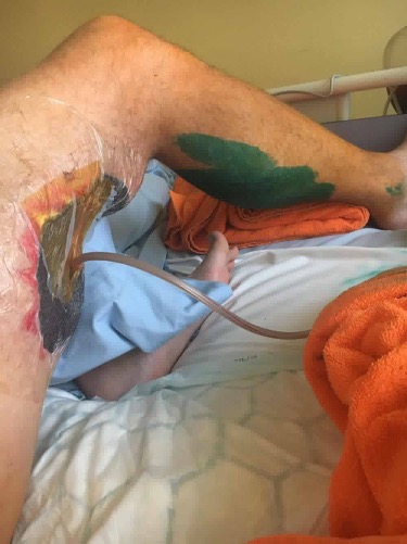 Ise ta vimma ei pea, tervitab oma lähedasi ja kõiki kes abiks olid. Esimene op tehti ära, puhastati haava ja lõigati üleliigsed naharibad ära. Nüüd ootab järgmist opi.