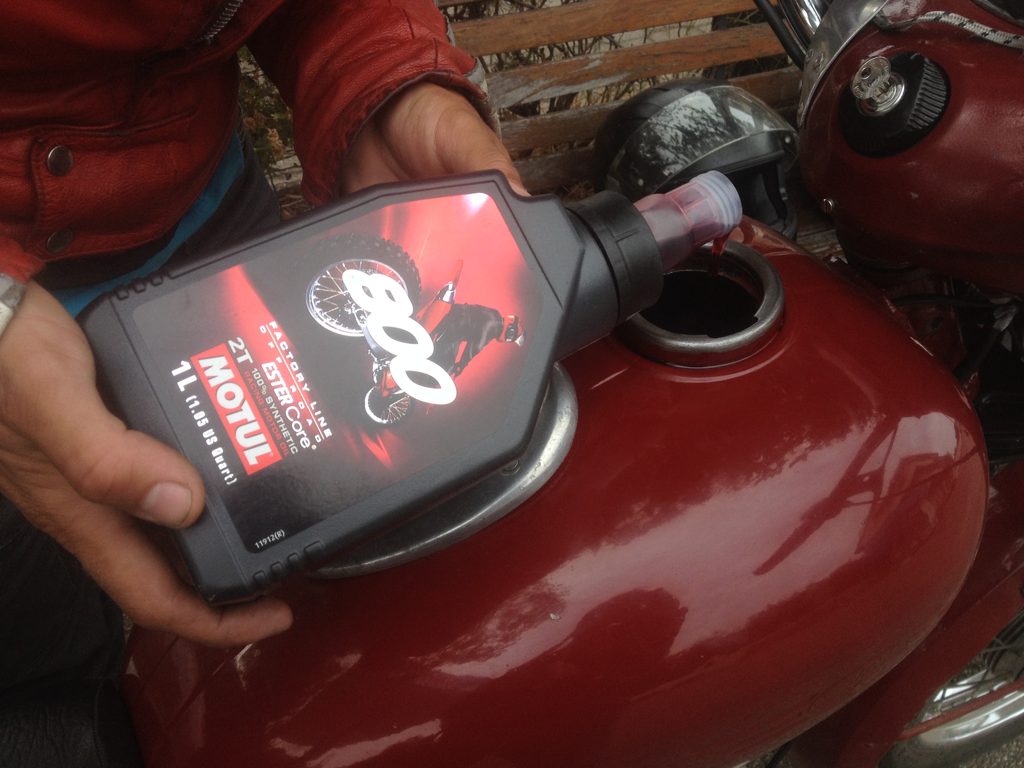 Loadära, astu läbi Gas Gas'i poest Paldiski maanteel ja võta hea hinnaga otse tünnist GRO täis sünt punast seguõli. See muidu Gasseri nö tehase õli. Kasutan ja ei oska midagi kurta, hullusti ei suitse ja ei haise, kuuma mootoriga suitseb väga vähe. Vahepeal sai ka mingit Valvoline oma kasutatud, see bensiini nii ilusaks ei värvinud ja minumeelest lõhnas ka veidi plastmassiselt.