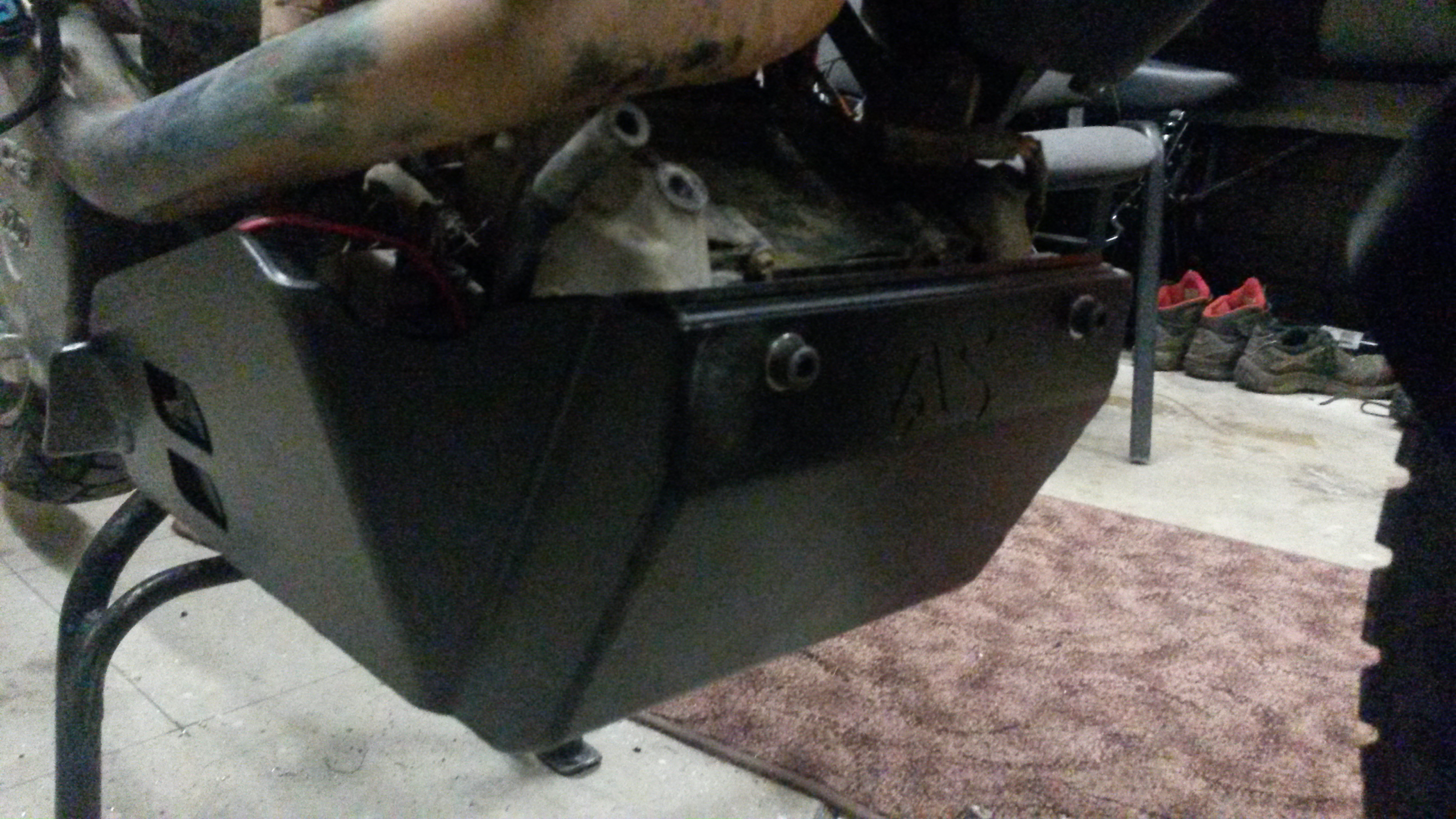 Eile paigaldasin uue põhjakaitse. Hirmus kolakas tundus laua peal. Aga kui paika sai siis istus päris kenasti.Poldiaugud ka õige koha peal ![]()