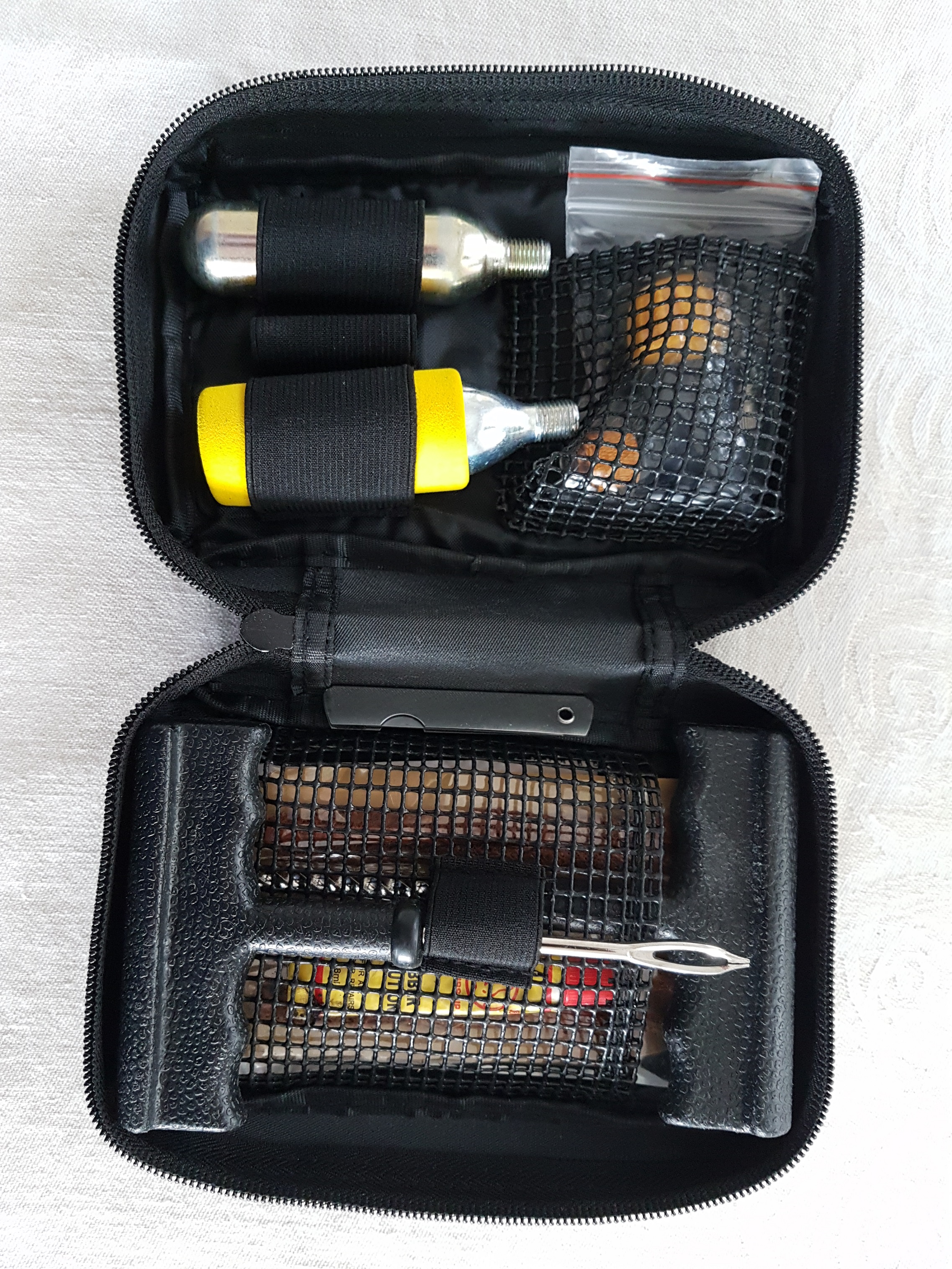 Mul kaasas nii nöör, rehvivaht kui ka käsipump. Pumpa pole veel tsikli peal kasutanud. Minu arvamus on, et kui kõik muud rehvi pumpamise seamed (CO-balloonid ja kompressorid) alt veavad, siis käsipumbaga saab mingi rõhu ikkagi sisse. Ma pole kursis, kui suured need kompressorid on, aga eeldan, et pump võtab vähem ruumi.