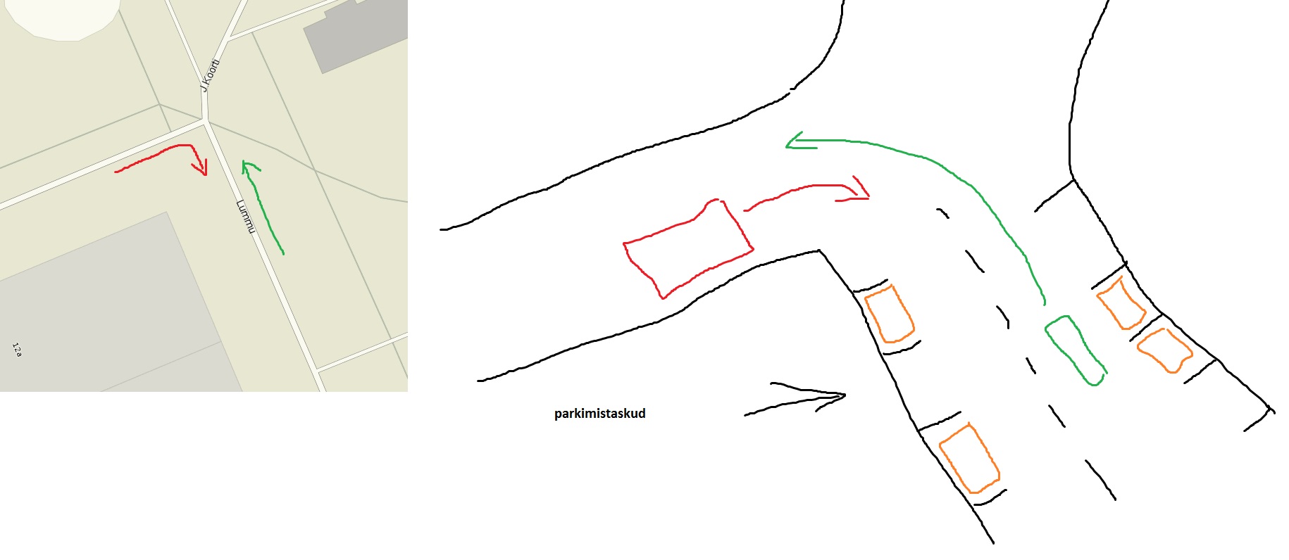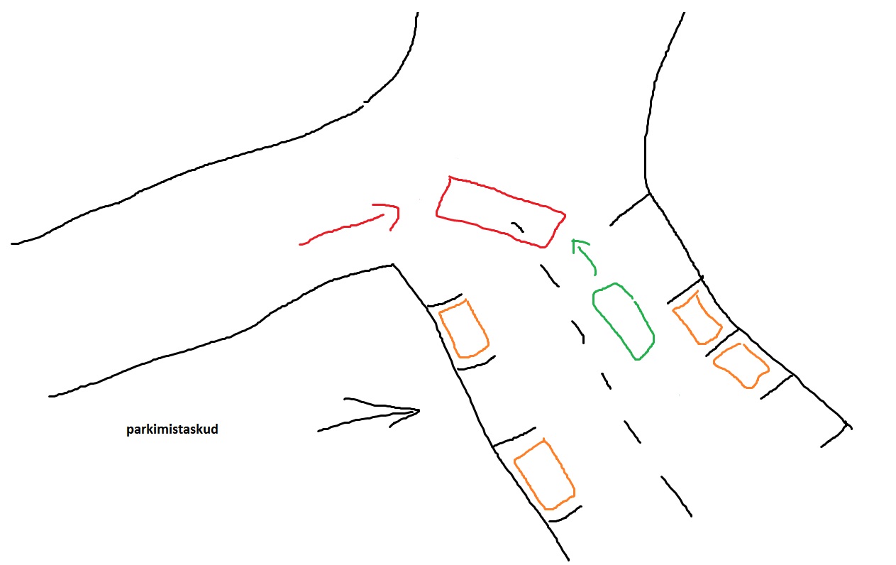 igatahes tervist talle loodetavasti vasakpööret ootava auto kõrvale(paremale poole T kujulisel ristmikul, blokeerides kogu vaate paremale) sõita ja samuti vasakule raiuda andis elule sekundi võrra pikkust juurde.