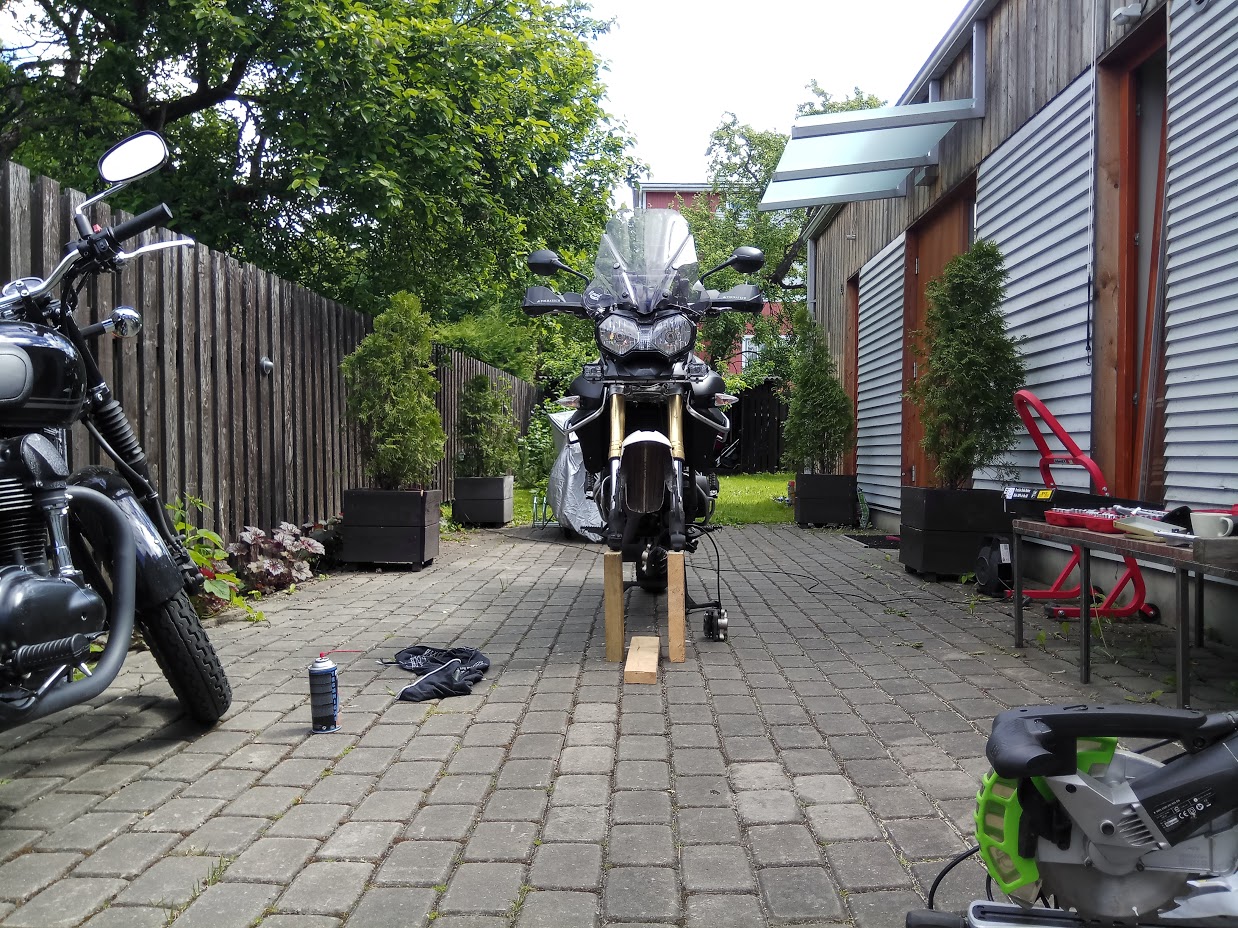 Vaja tsiklil esiratas alt ära võtta.TÄIENDUS: sobib enam-vähem igasugune esipukk.