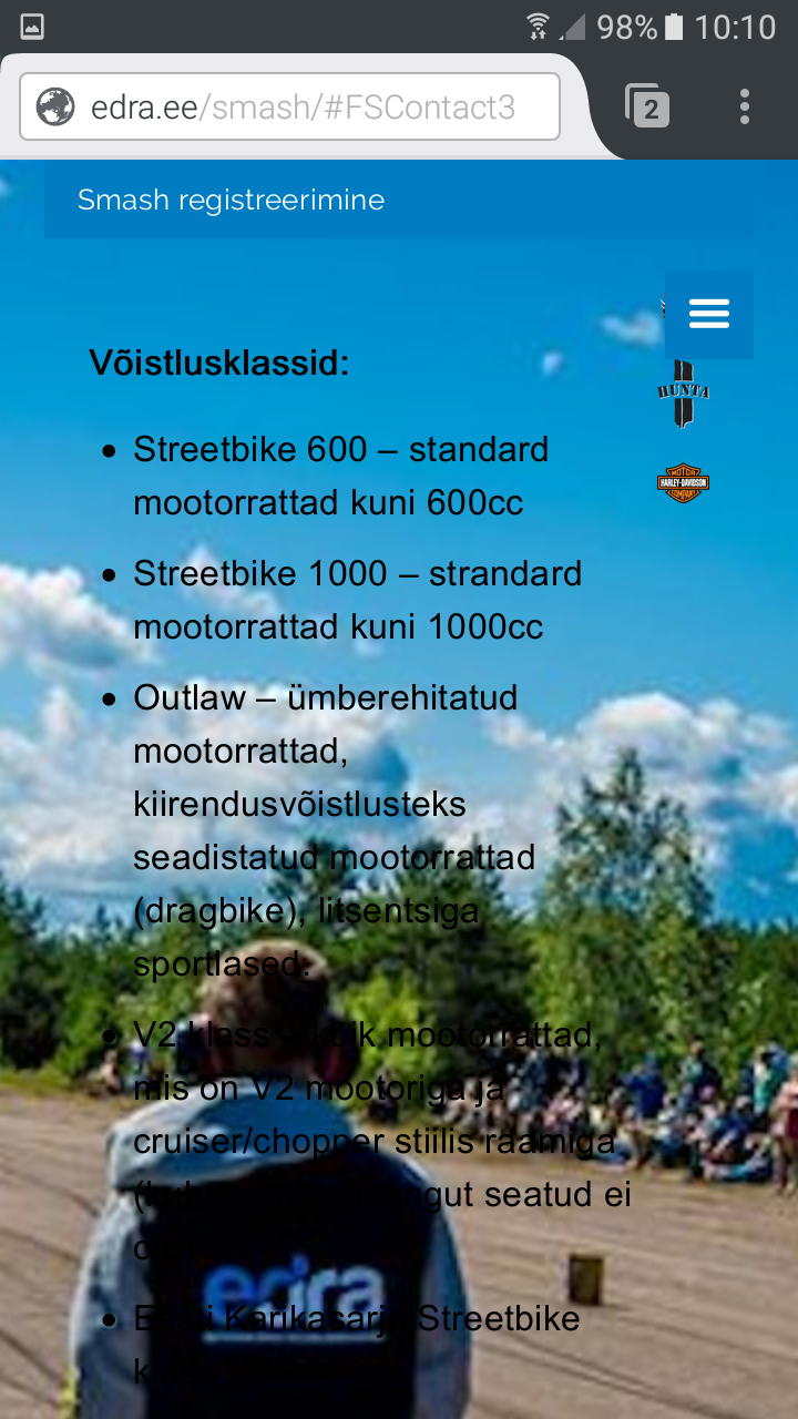 Mul piletihinnast on suht savi, olgu kasvõi 50 ikka lähen kohale. Kuid Kristjaniga nõustun sellekohapealt küll, et lahjemaks on jäänud nii inimeste kui ka üldise melu kohapealt. Ei tea kas põhjus on selles, et teatud kaader jääb vanemaks ning valitakse american beauty mis on alati samal nädalavahetusel ? Kuid oleks endal ka huvi teada kas 2018 toimub v mitte...kuid korraldajatele soovin edu. Smash on läbi aegade kõige ägedam motoüritus üldse Eesti ajaloos ![]()