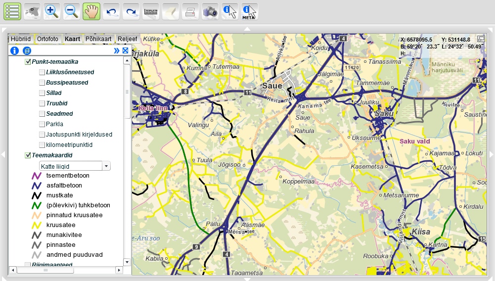 Milline online või paberkaart näitab ära, millised teed on pinnatud ja millised kruusateed?