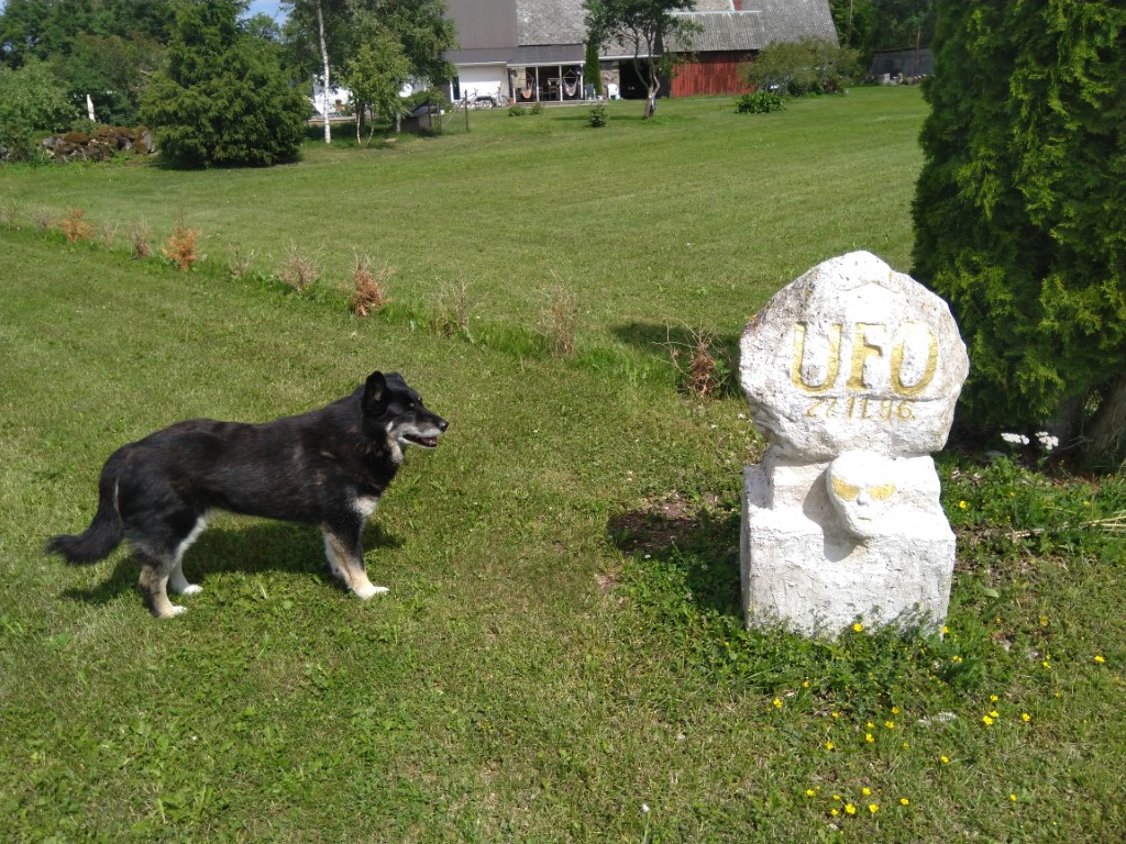 UFO mälestusmärk ja tema surematu abiline, teadetetahvel ja ratas koos eelnimetatuga.