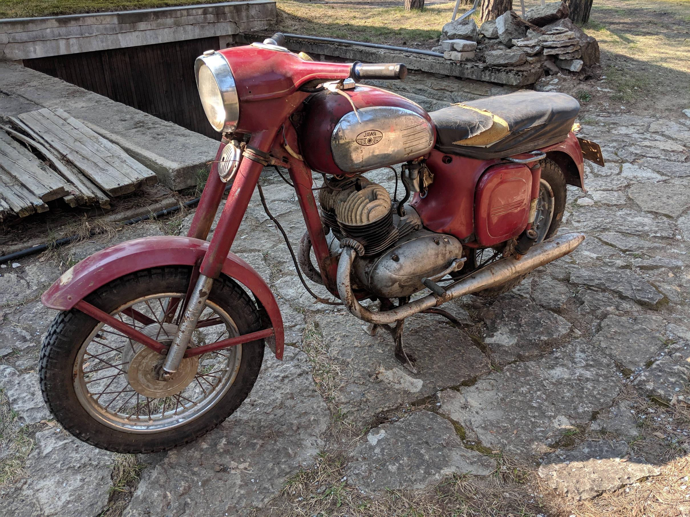 Eks kehtib ütlus, et sinna kus juba on, tuleb veel juurde. Ja see siin ei ole muidugi erand. Sai üsna "kogemata" osta.ee-st Jawa 354 ostetud. Birka, raam ja mootori nr klapivad ja mootor läks teisest paugust tööle. Sellega enamvähem need "head" selle ratta puhul lõpevad. Kõik trossid olid kinni roostetanud, sama lugu piduri ektsentrikutega. Tagumise rummu sees oli kokkuhoidu harrastatud ja kahe piduri katte asemel vaid üks paigaldatud. Kõige rõvedam viga on küljest murdunud vasaku jala raud. Seda peab hakkama mingit moodi keevitama.