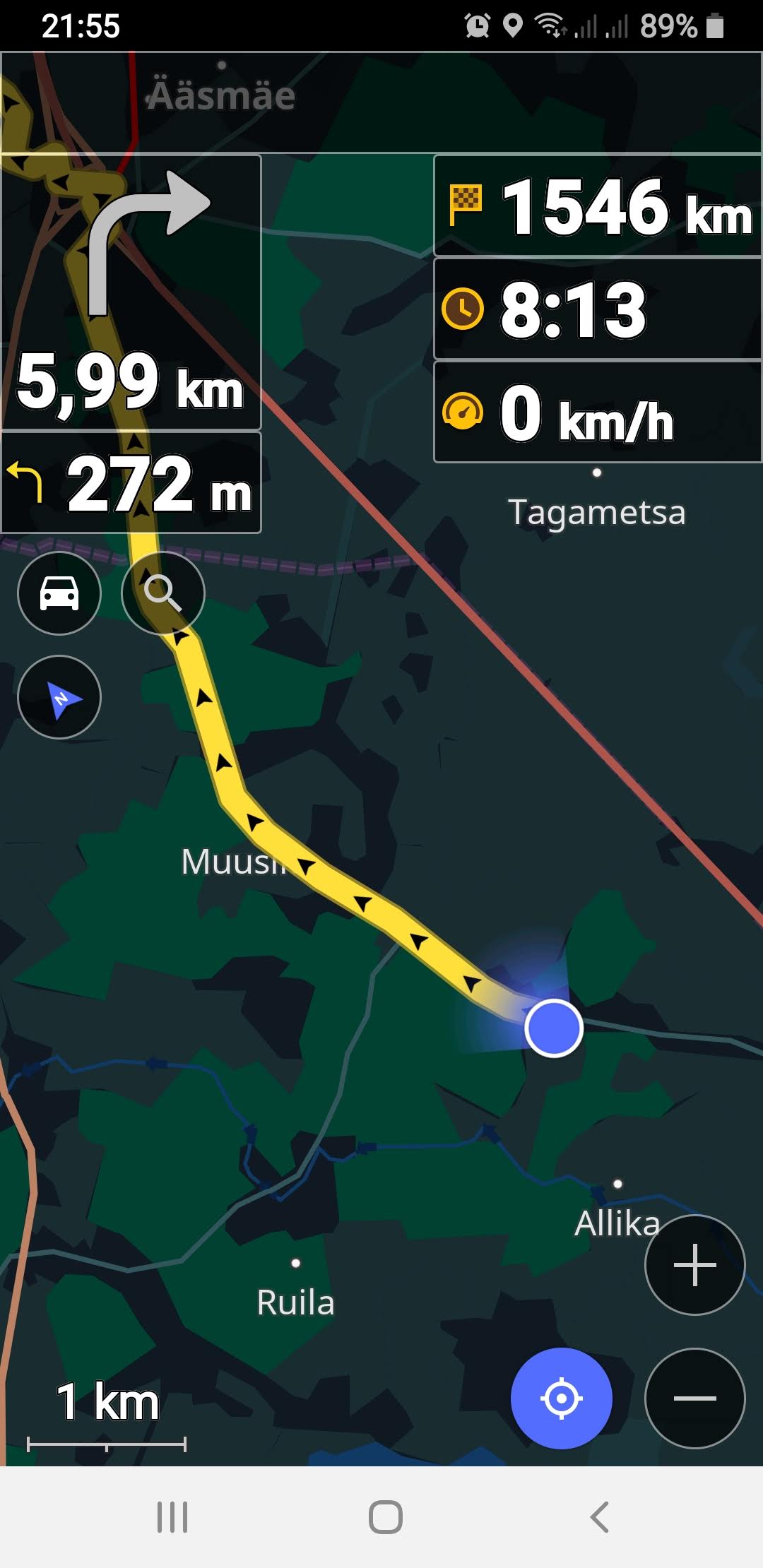 Proovisin eile ära sellist äppi nagu Calimoto. Võtab ette kaardi ja otsib seal algorütmiga käänulisi teid. Saad sisestada kas sihtkohta või kilomeetrite arvu (ringiga praegusest asukohast), ja ta ehitab sulle ise huvitavat marsruuti. Siis saad selle järgi sõita, võrguühenduseta navi täitsa töötab. Mulle tekitas umbes sellist pilti:
