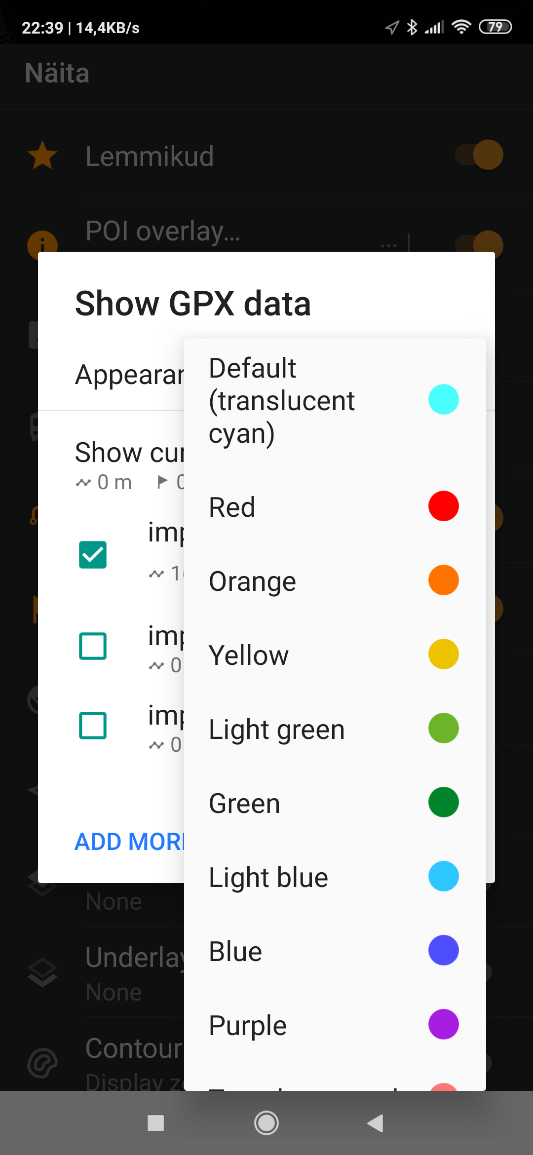"Hamburger" - Configure map - GPX files - Appearence ja Bold äkki?