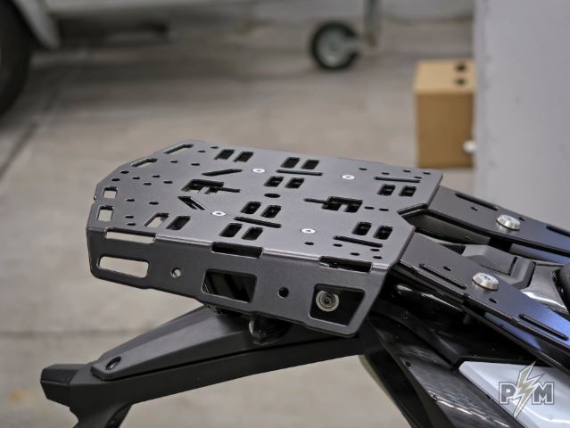 Lisaks on vaja platet, millele pagas kinnitada. Touratech toodab toredat vidinat, mille ametlik kandevõime on ainult 5kg ja kuna mu rattal on mudeliuuendusega saba ja paak ümber disainitud, siis seda tükki mulle saada pole. On olemas väiksemad ja toimekamad ettevõtted, kes pakuvad väheke tõsisemaid raame. Kui on plaan vedada ainult kotti, siis Nomad ADV toode on väga parajas kaalus ja mõõdus:
