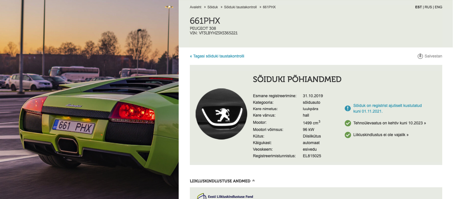 - Fredy OÜ juhatajal pole erilisi raskusi teadliku seaduserikkumisega. Näiteks täiesti OK on sõita Lamborghini Murcielagoga ringi, millele on kinnitatud PEUGEOT 308 registrinumbrid (661PHX). https://auto.geenius.ee/eksklusiiv/proo ... -ratastel/
