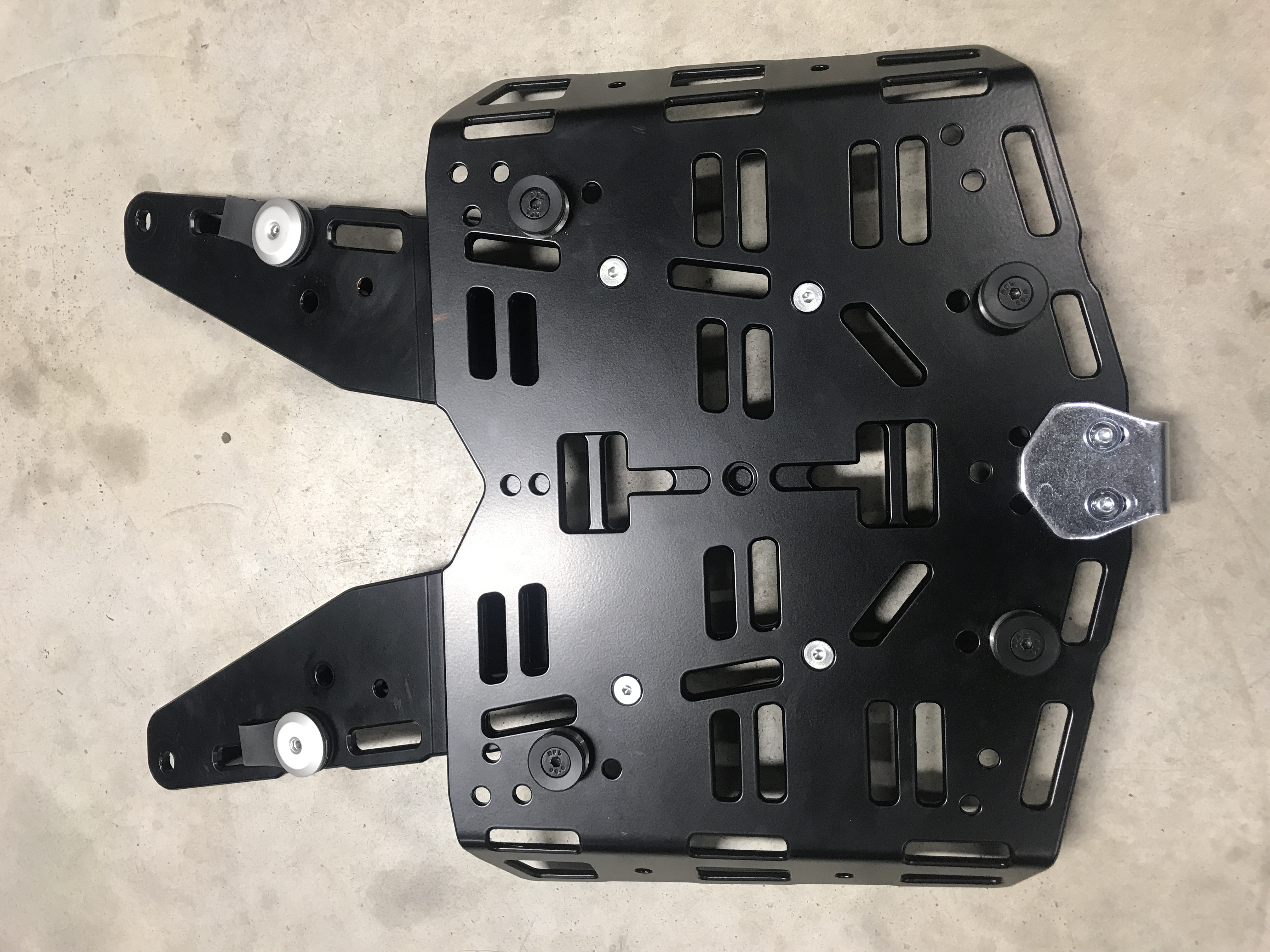 Lisaks on vaja platet, millele pagas kinnitada. Touratech toodab toredat vidinat, mille ametlik kandevõime on ainult 5kg ja kuna mu rattal on mudeliuuendusega saba ja paak ümber disainitud, siis seda tükki mulle saada pole. On olemas väiksemad ja toimekamad ettevõtted, kes pakuvad väheke tõsisemaid raame. Kui on plaan vedada ainult kotti, siis Nomad ADV toode on väga parajas kaalus ja mõõdus: