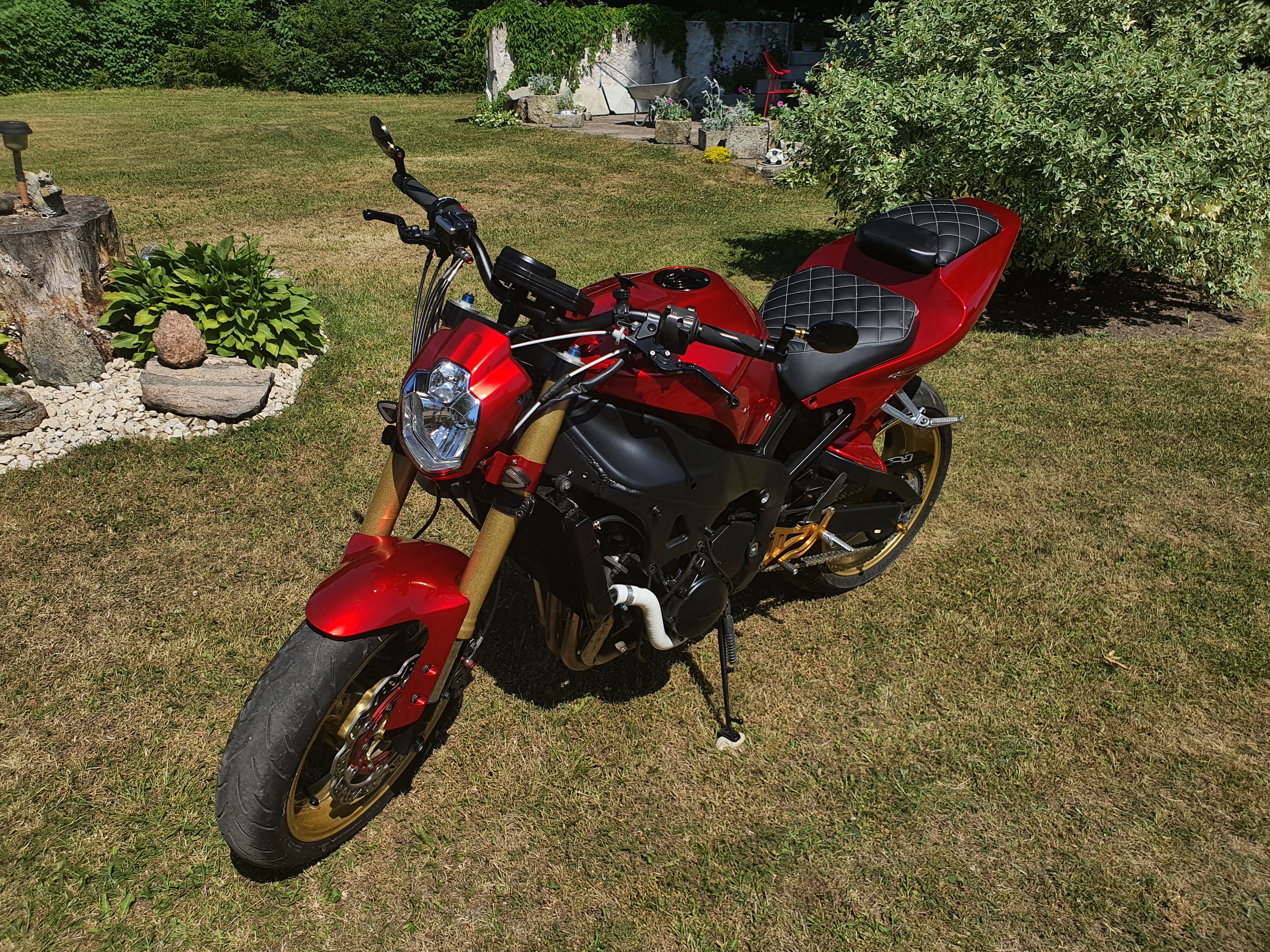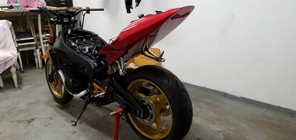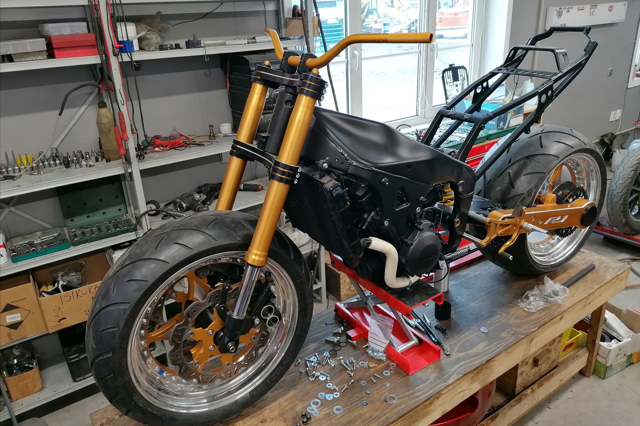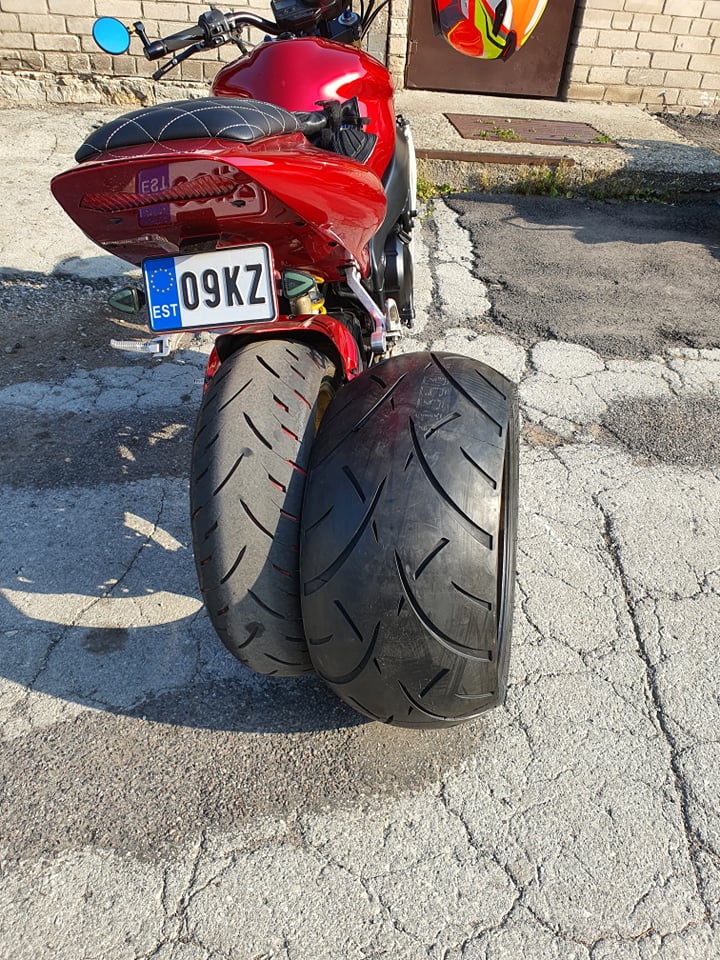 Mida olen siis vahe peal teinud, olen leidnud endale esitule, milleks on yamaha mt-03 oma. Ei miskit erilist. Tagatule plate siiski tegin uue ja alumiiniumist, kuna fiiber muutus liiga raskeks. Katkusin ka z1000 tagatule lahti, et saada tuld väiksemaks ja tiba ülesse poole. Tänaseks on jupid viidud värvi Kickass Tuning (Ingo Kikas) juurde. Panen siis mõned pildid kah