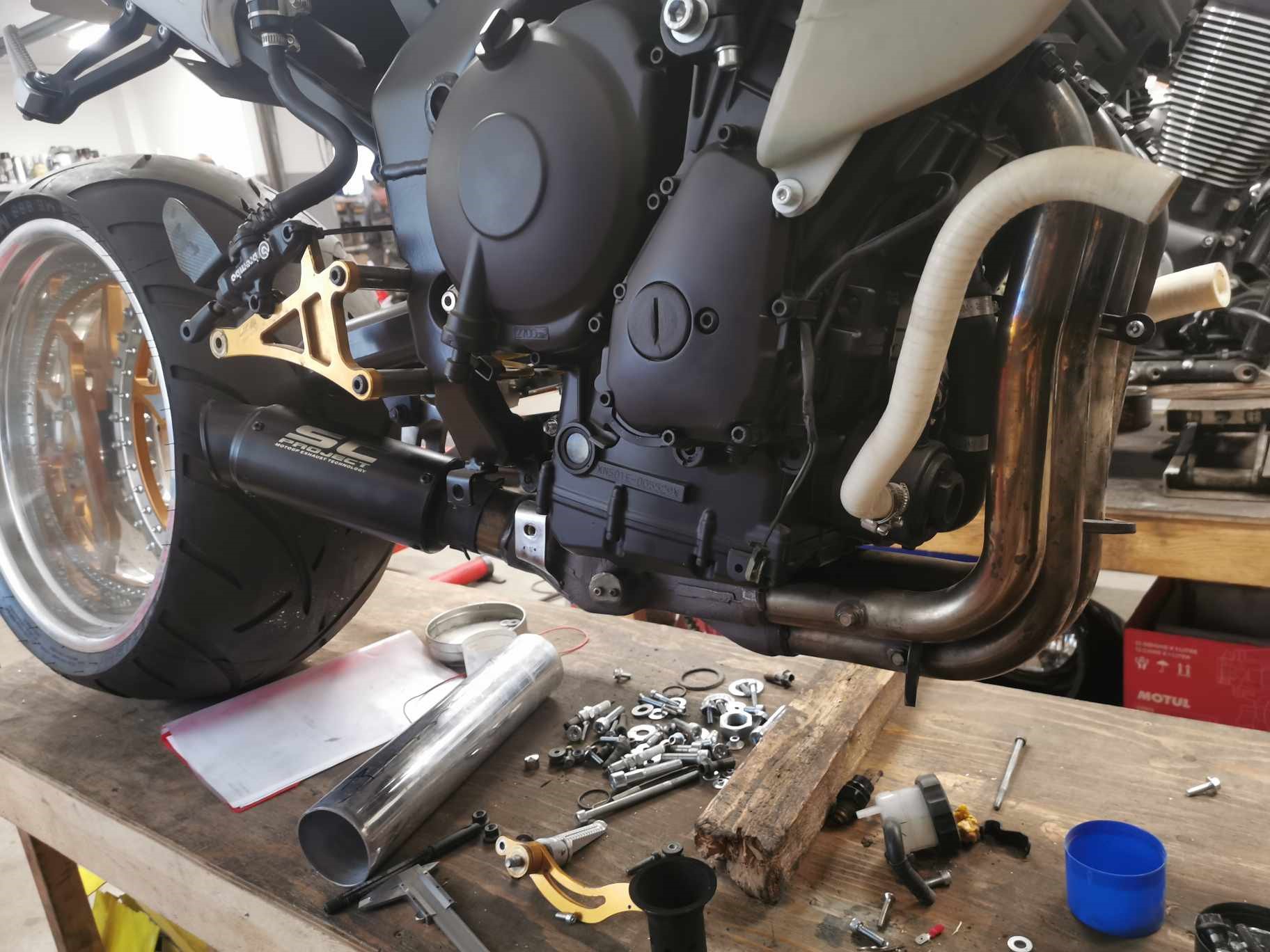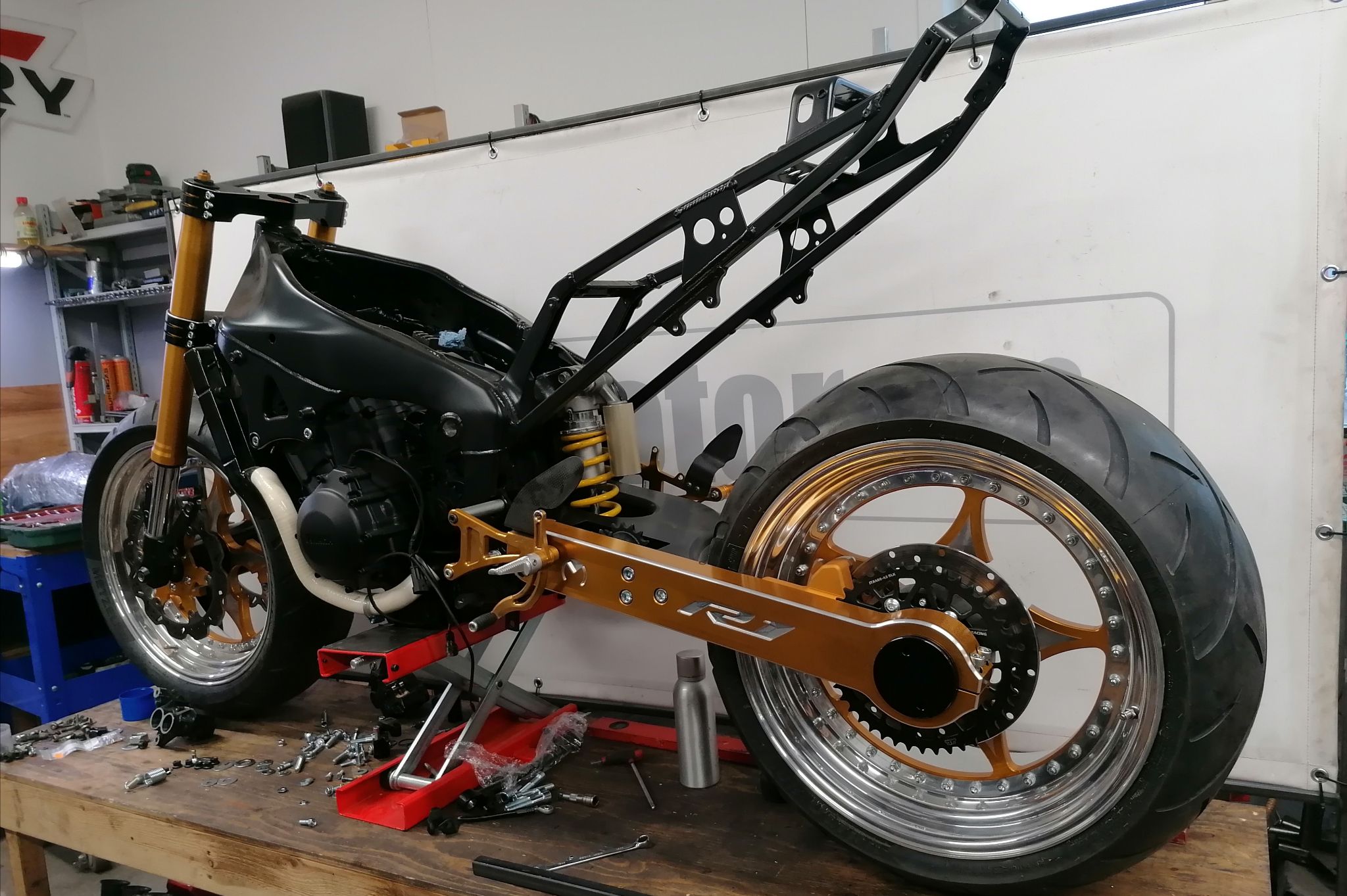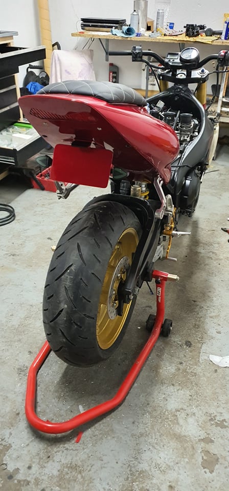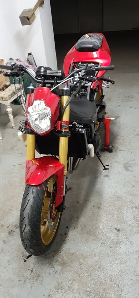Mida olen siis vahe peal teinud, olen leidnud endale esitule, milleks on yamaha mt-03 oma. Ei miskit erilist. Tagatule plate siiski tegin uue ja alumiiniumist, kuna fiiber muutus liiga raskeks. Katkusin ka z1000 tagatule lahti, et saada tuld väiksemaks ja tiba ülesse poole. Tänaseks on jupid viidud värvi Kickass Tuning (Ingo Kikas) juurde. Panen siis mõned pildid kah