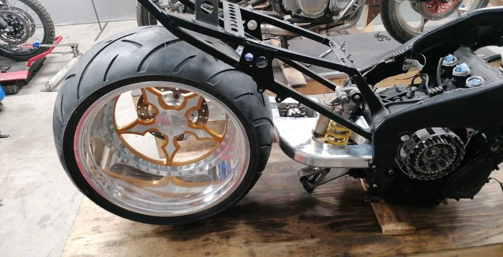 Tervist. Omajagu aega on juba möödas viimasest postitusest. :D Mõtlesin, et täiendan natuke, mis vahepeal tehtud. 8) Tagaosa on saanud uue kiige ja soov oli teha kahe keti peale mitte üks pikk, tundus kuidagi, et võiks ilusam vaadata olla. :D Paagile sai tehtud nats juurde keevitust, kuna ei meeldinud raami ja paagivahelised tühimikud. Uued nupuplokid, uus porikas esirattale. Mootori sisu sai nats värskendatud ja uue värvi uuesti. Lenks ka uus, kuna vana jäi lühikseks. Ratas enamvähem koos, puuduolevad jubinad tellitud - peeglid, esituli (harley davidson), esisuunad lenksu otsa. Plastikud ootavad värvi, värviks tuleb candy red ja natuke pildi graafikat värvi alla. Ah ja sadulad samuti nahatamises. Kindlasti midagi oli veel, mis tehtud, aga eks pildid ütlevad rohkem, kui 1000 mõtetut sõna. :D