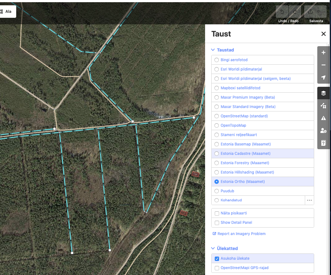 Ma ei tea, kui paljud seda teavad aga kui OpenStreet mapis sisse logida ja võtta kaardi muutmise/täiendamise funktsioon siis saab kasutada alauspõhjana maa-ameti kaarti.