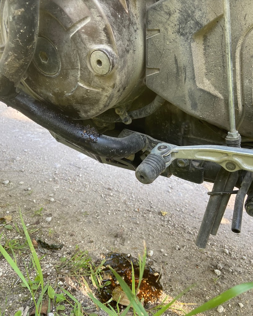 Ei oska siiani õelda, kuidas sai terve põhjakaitse 3cm niimoodi üles liikuda. OMi Lorry arvas, et kui ratas külili läks, siis kogu raskus oli ühe väikse põhjakaitse ala peal ning see sama ala sai ka mingi suurema kivi löögi ning seetõttu deformeerus hetkeks. Ta teooria on ilmselt õige, sest põhjakaitse ühel väiksel plaadil on kivi löögi jälg ning see koht oli ka veidi sisse poole paindu. Karu ja Isakene arvasid, et tuleks seda kohta veidi maha lõigata, siis järgmine kord ta lihtsalt ei ulatu enam mootorini.