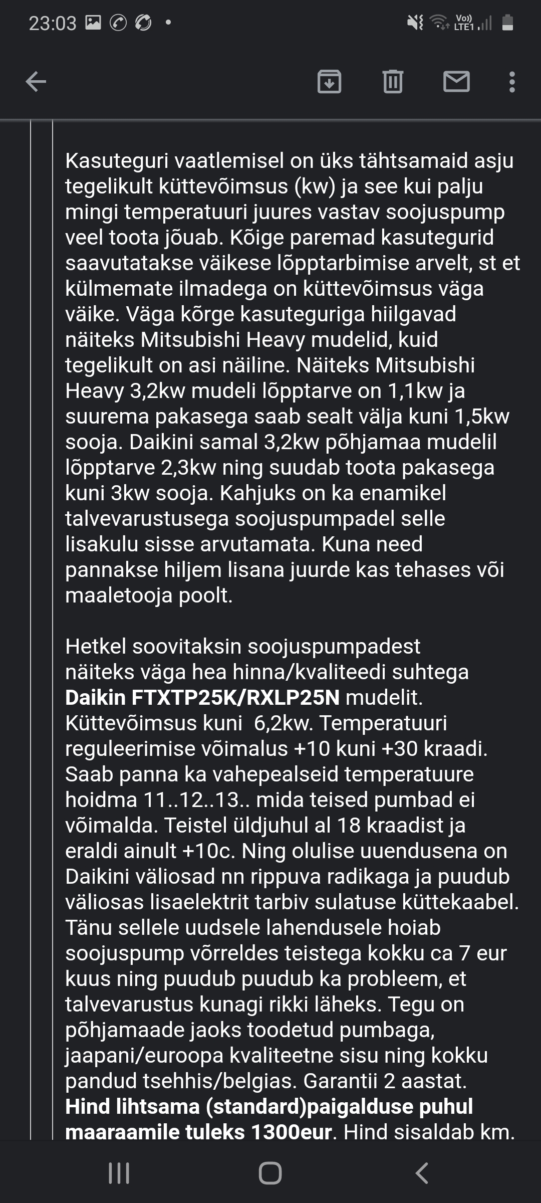 Omale panin Daikini mõned aastad tagasi. Ei oska nagu midagi halba öelda peale selle, et pole nutiseade(millest mul tegelikult ka suva). Istub kiviseina taga maaraamil ja selle töötamist kuulda pole. Lihtne töömasin.
