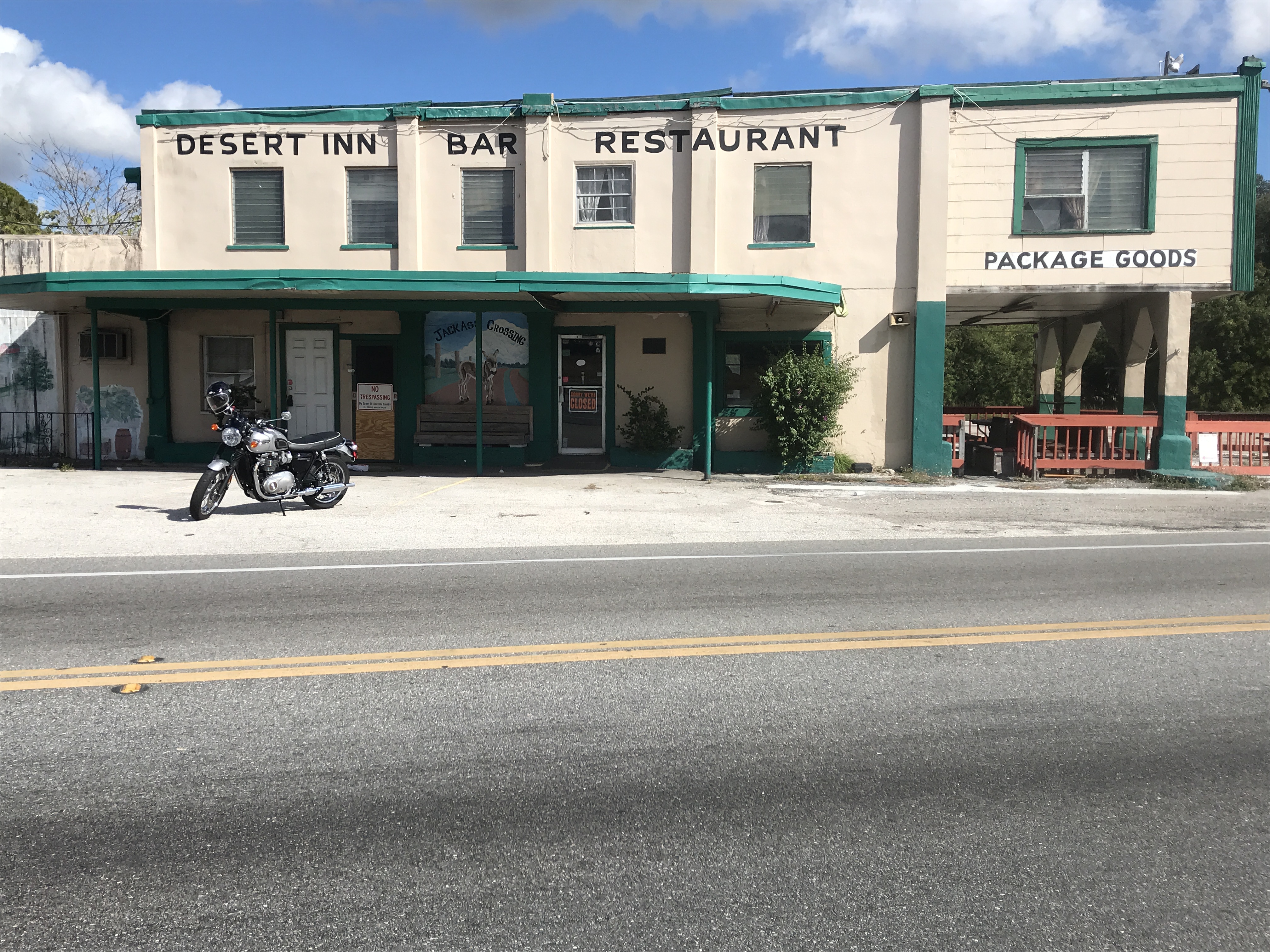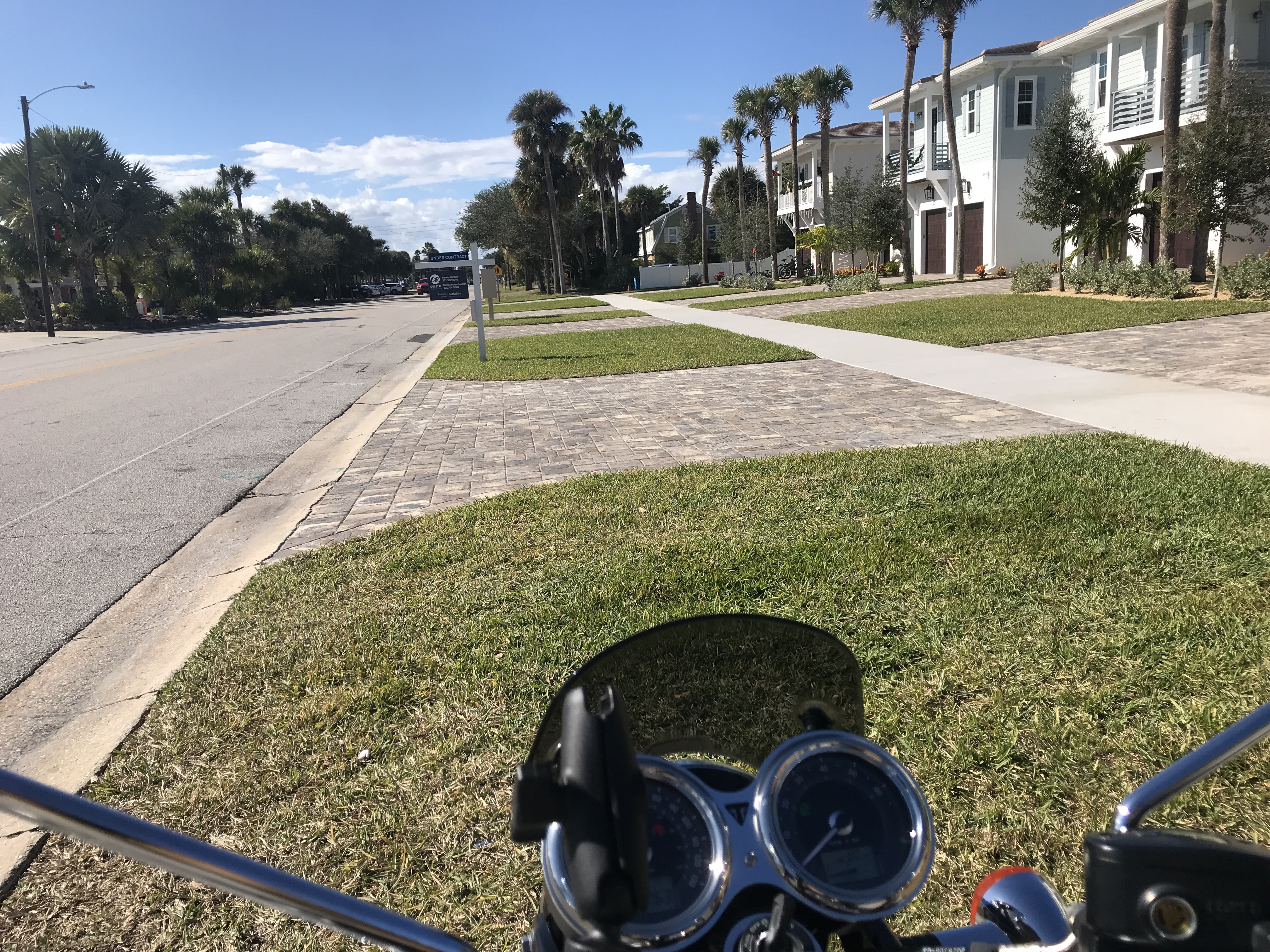 Sõitsin osariigi läänekaldalt idarannikule (FL on poolsaar). Konsulteerisin kohalikega ja valisin välja paar maanteed, mida nemad nimetavad “kohalikeks teedeks”. Meie mõistes Piibe maantee. Sõita sai päris kiirelt. Tee läbis mitmeid väiksemaid linnu ning seal oli piirang 70 km/h. Mujal enamasti 110km/h. Nali on selles, et kõik annavad julmalt kuuma. Täiesti tavaline oli see, et kiirust ületati 10-20 mph. Teisiõnu – linnast kütad mitmerealisel teel 90ga läbi ja sirgel teel kiirematega sammu pidamiseks oleks vaja paremat kiivrit kui see Belli koorik, mille ma rentisin. Kohati ka kiiremat ratast ![]()