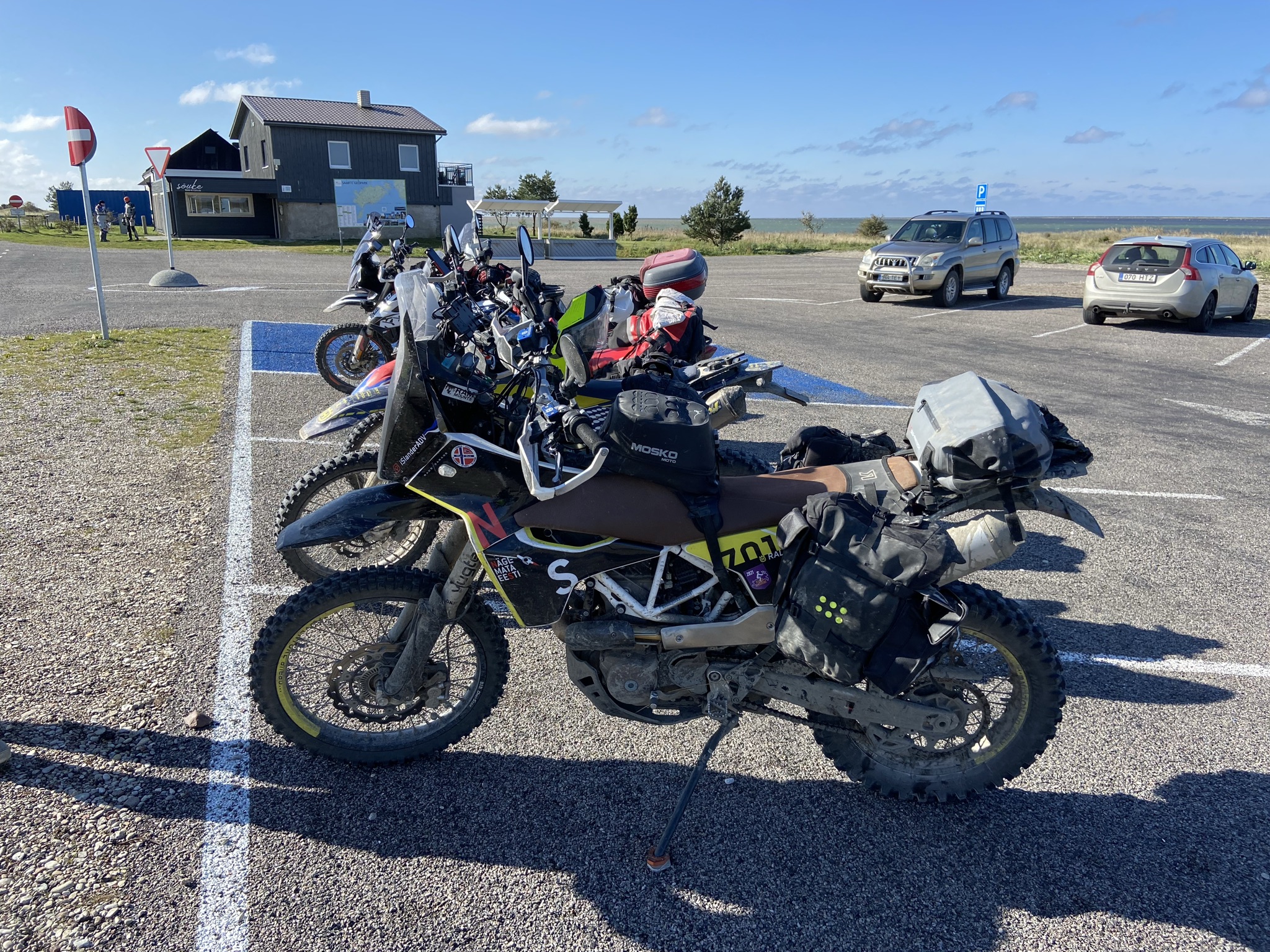 Õhtul tegime Sõrves sauna ning hommikul küsib Prets, et kas mul rattas ikka õli on? Kontrollisime, pole. Andis enda õli, sest oli äsja kontrollinud ja arvas, et on miinimum. Tegelikult oli ka tema Huskyl õli otsas, niiet tegime oma plaanid veidi ringi. Suundusime Sõrve tippu ja teel kohtasime veel kahte ratturit
