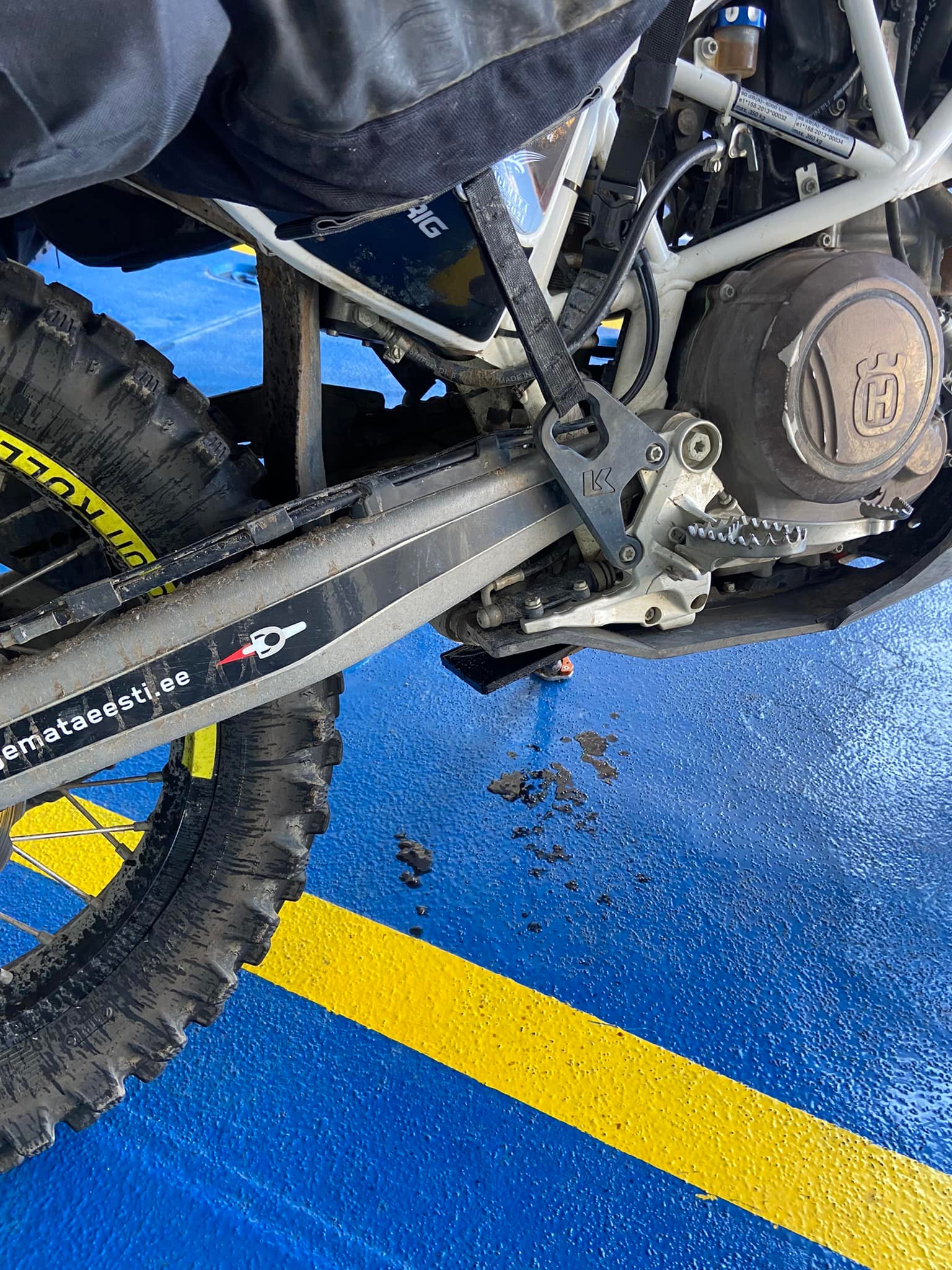 SÕitsin praamile, isegi ei ületanud kiirust ja sain otse peale. Parkisin ratta ära, hakkasin rihmasid otsima ja siis järsku märkasin, et õli otseselt voolab välja.
