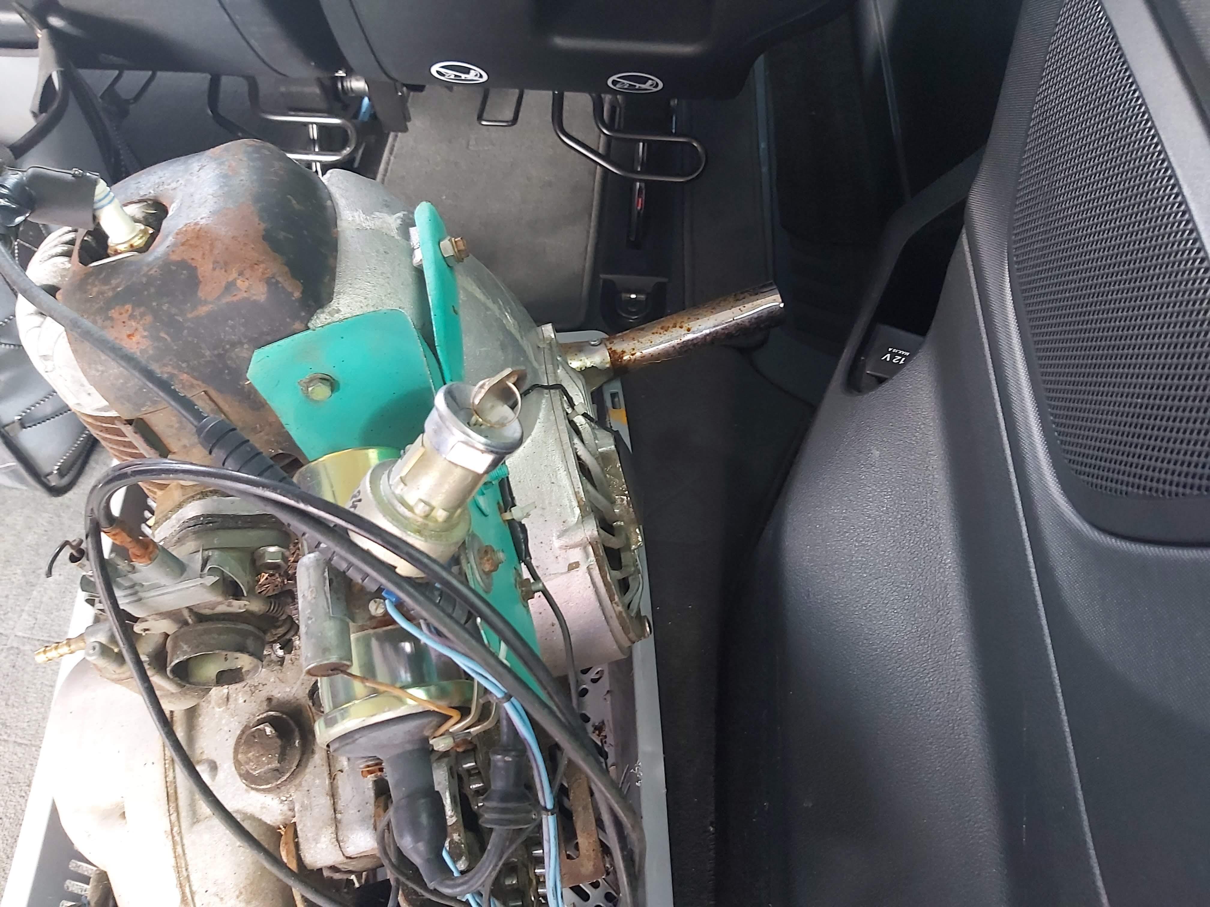 Mootor oli pärit mingi motoploki või aiatraktori laadse asja pealt ja on väga olematu kulumisega. Silinder- kolb nagu uus ja genekas ka. Karbuss ka nagu tutikas(see on lahti-kokku pandud). Kahjuks oli karterisse-käigukasti-sidurisse niiskust pääsenud, sest see aparaat seisis ilmslet aastaid õues lageda tava all. Sidur on nagu uus, aga lihtsalt mõned roostese vee jäljed peal ja käigukastis pole ka suurt midagi hullu, kuid üks vända laager on natuke kahjustada saanud roostest. Käigukastis ei olnud õli ka just liiga palju ja see mis oli, oli vee ja rooste segu.