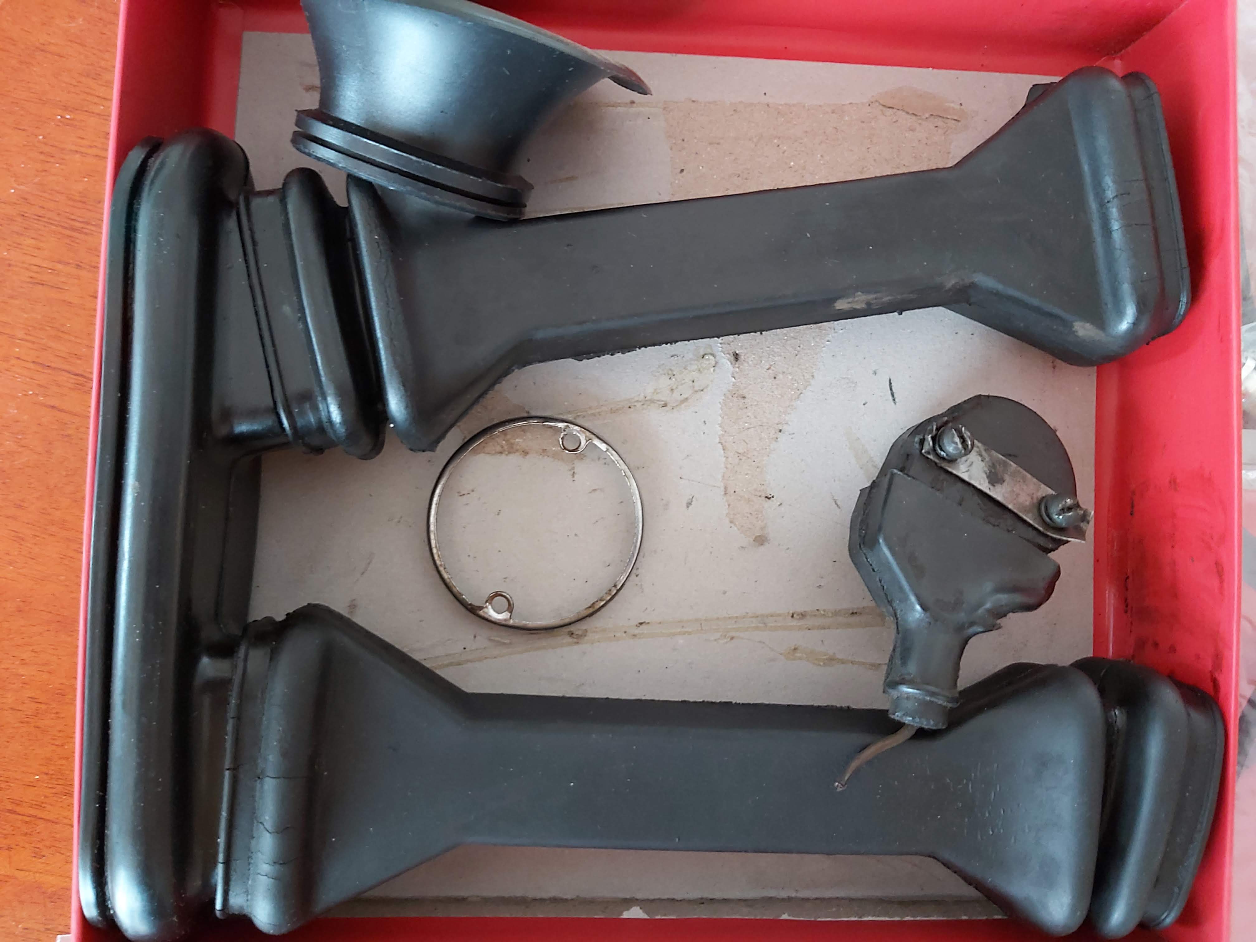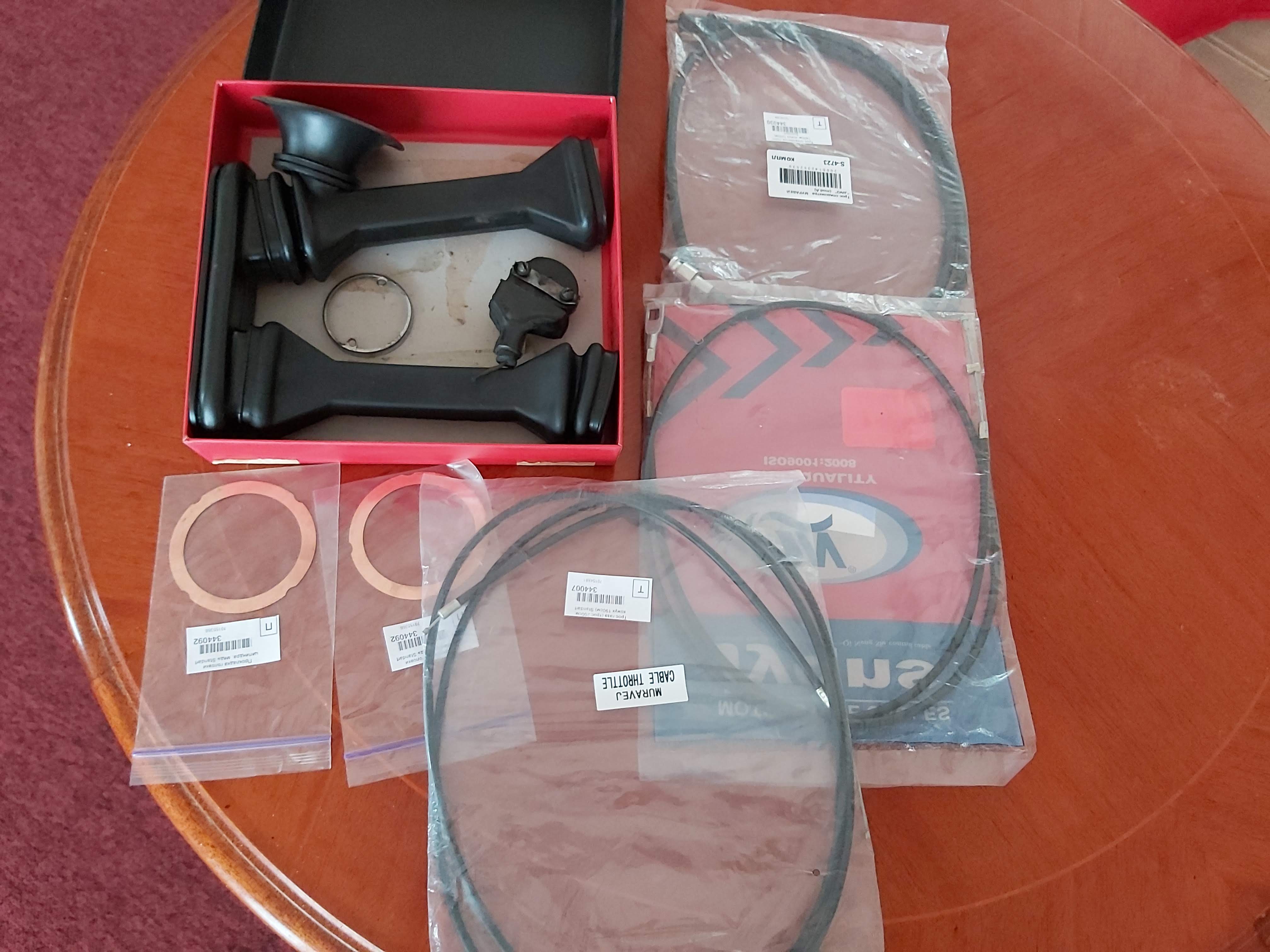 Eile tuli ukrainast pakk asjadega, mis juba mõnda aega oli seal sõbra pool olemas ja ootasid siia saatmist. Kokku on siin piltidel kolm ostu. Seal oli üllatusena ka neutraali lüliti olemas :) kuigi seda ainult küsisin nendelt müüjatelt ehk see mure ka lahendatud. Muus osas sain mitu asja mida mul üldse polnud. See ümmargune kummilutt on õhupuhasti ots ja seda pole ma kuskil rohkem müügil näinud. Selle eest küsiti ka urainas ligi 20€. Nüüd kõik originaal trossid olemas ja üks ketikumm nö varuks ka, sest sain terve uue komplekti. Pikalt otsitud suunatule metall võru nüüd olemas ja saab kõik asjad kroomimisse viia.