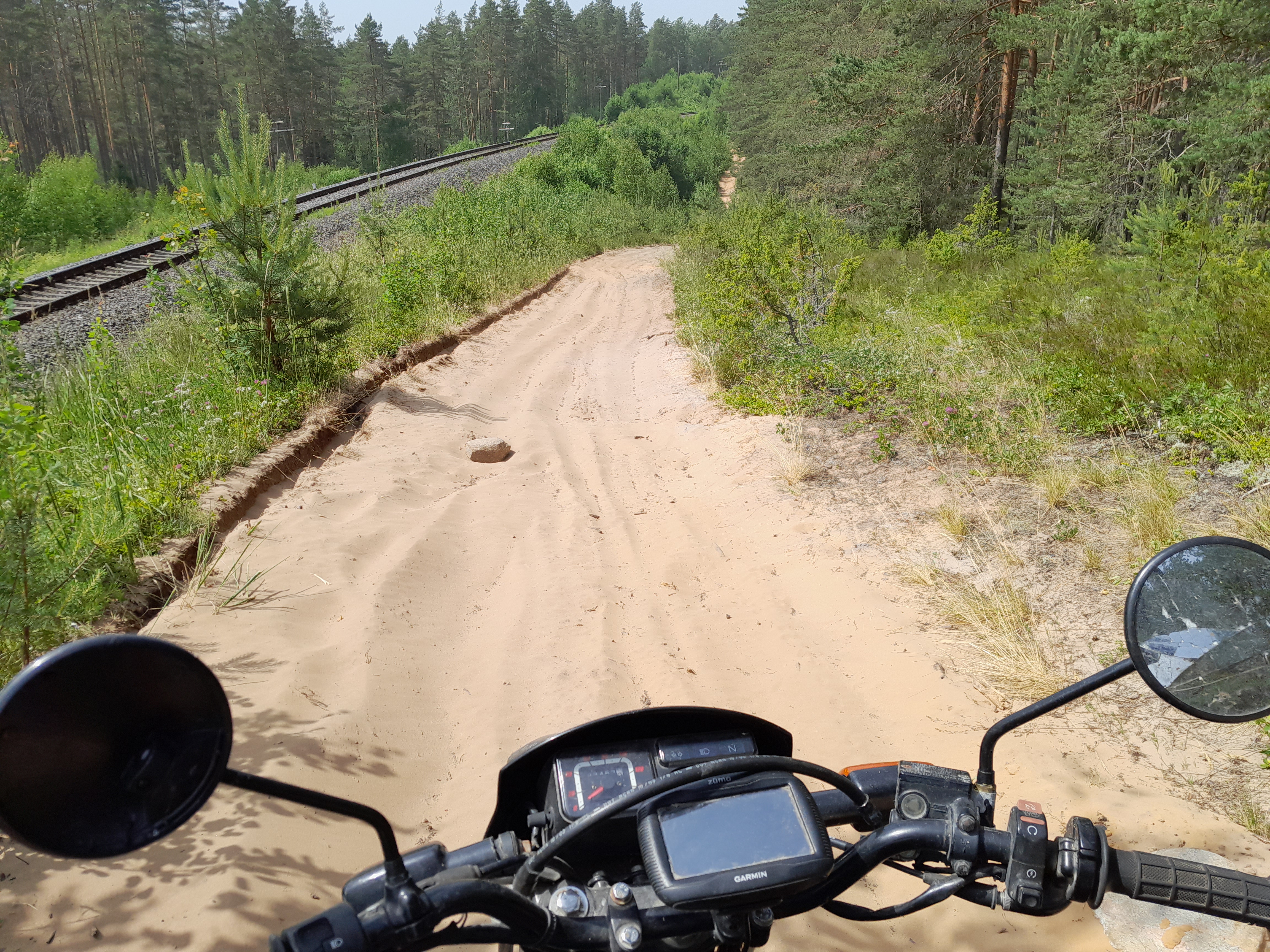 Raudteetamm, sõber kukkus seal korra. Arvasime, et sellele ei tulegi lõppu, suure ratsiooniga graniitkivi, sõidaks nagu pallimeres, kus põhi on 20cm nähtavast pinnast all pool, esimene ratas koguaeg otsis teed, hoogu ülesse ja stabiilseks ei saanudki. RMK kasutab oma metsateedel tiba väiksemaid kive ja neid on kilomeetrite kaupa mõõdetud, need on tammi kivide kõrval köki-möki, vähemalt meie ratastega.