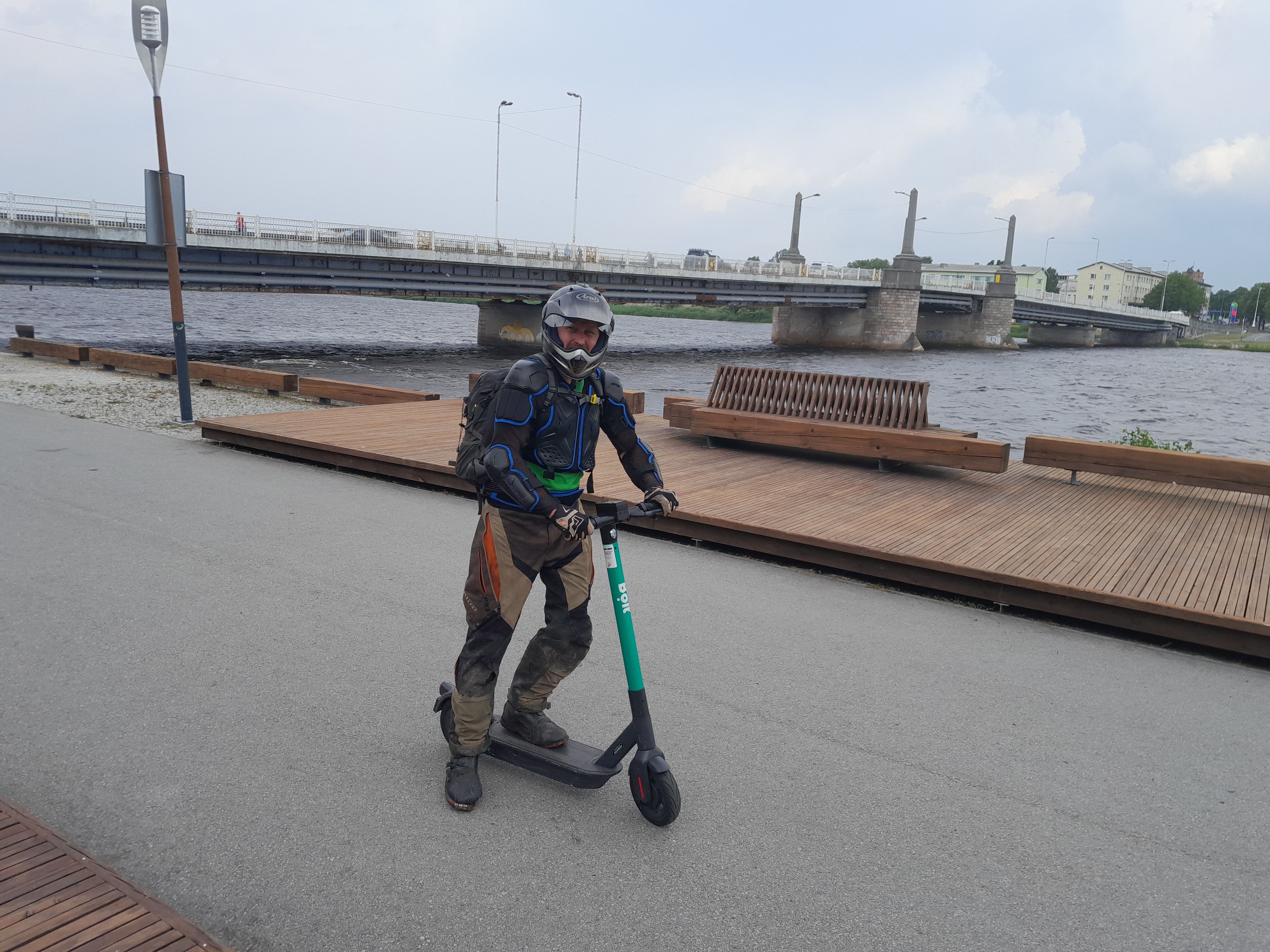 Kuna aga TETi trassiväliseid km proovisin igal võimalusel vältida, ning tegelikult puudus ka TÜV, siis ei tahtnud seal tiheasustuses väga mendimagnetit mängida ega hakanud oma rattaga sinna kesklinna poole nuumaotsinguile trügima...vaid järgneva pooltunni vältel võis siis sealkandis märgata järgmist "eeskujulikult turvavarustatud" tõukeratturit: