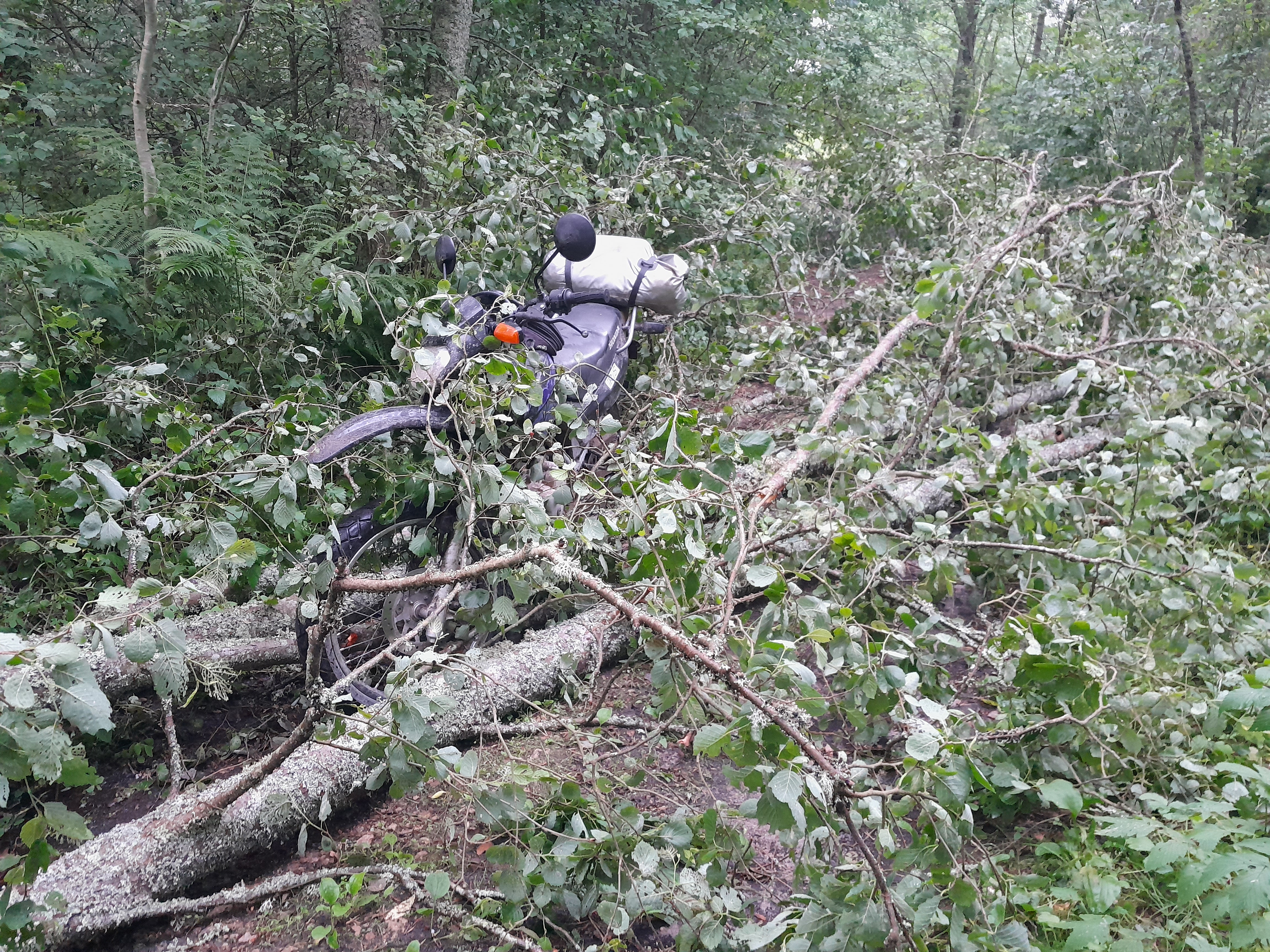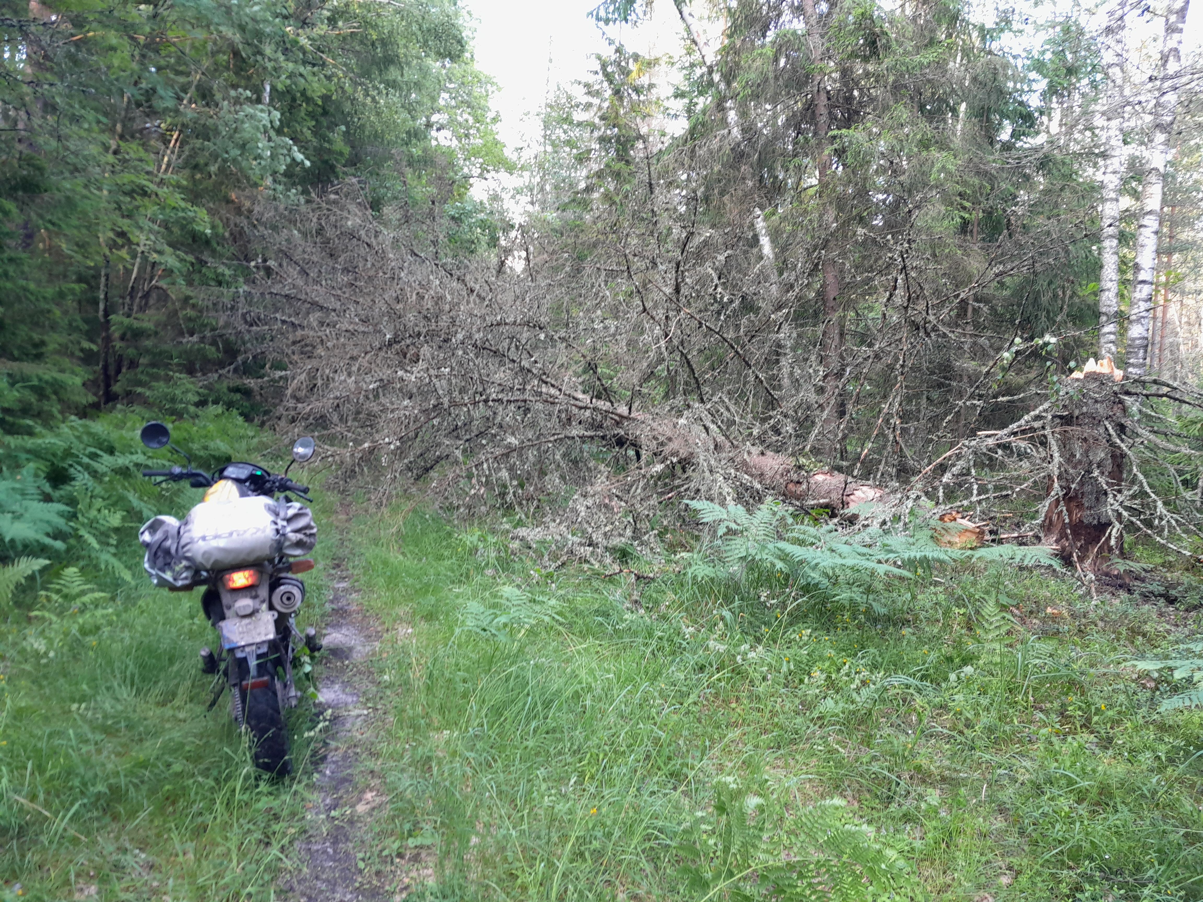 Aga ajasime pilli soojaks ja salvestasime gpxi ära. Esimese sihi peal sissekeerates kaks väiksemat palgiületust ka. Et ärge seal rohu sees siis väga pähe andke. Transalpiga sain kenasti üle, aga märja ilmaga on teinekord sõbra abi ka vaja läinud...