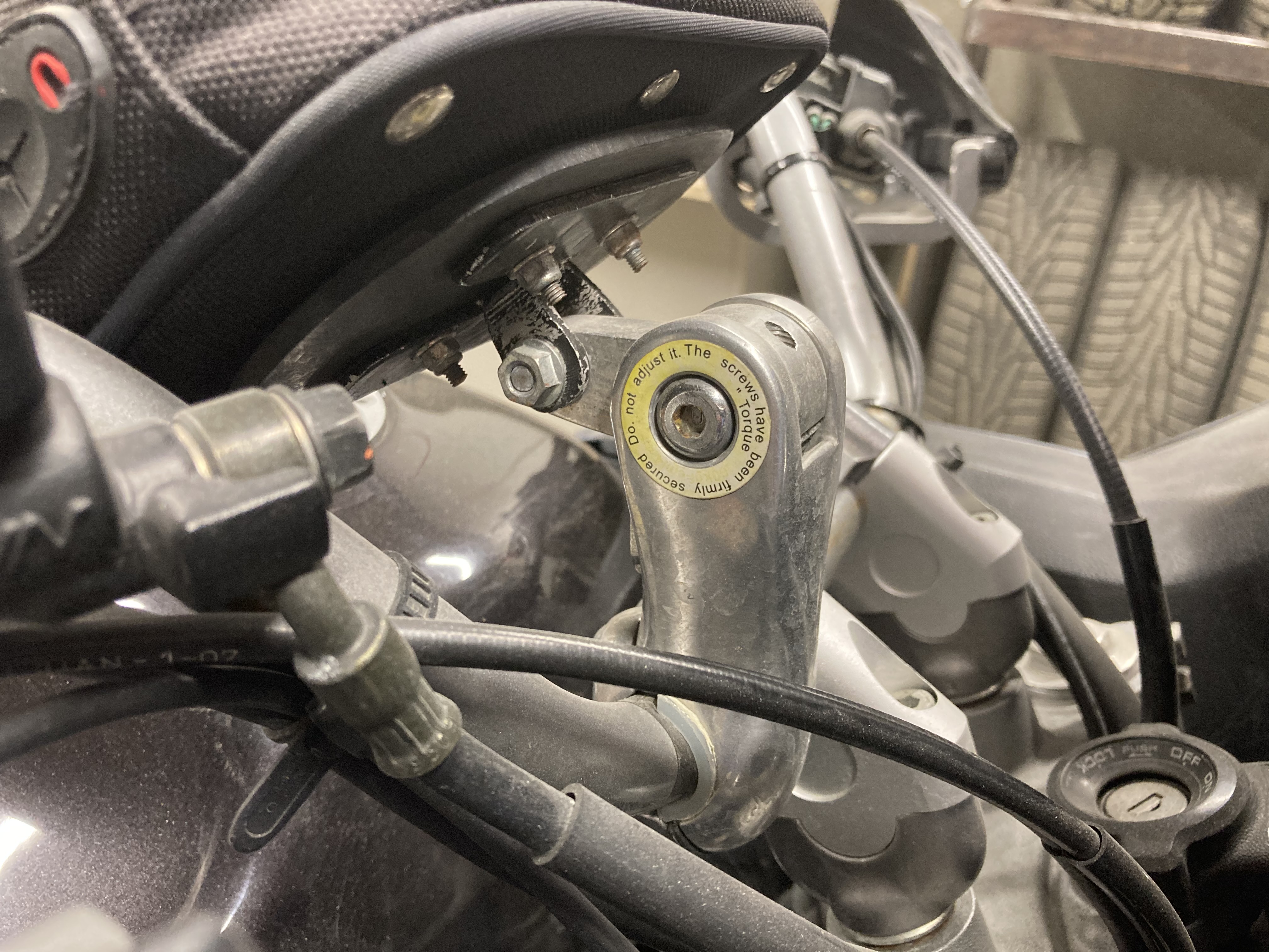 Mina kasutan sellist samodelkat. Põhimõtteliselt on insenerid selle välja mõelnud jalgratta leknsu hoidikuks. Sellel on täitsa oma nimi ka olemas aga ma enam ei mäleta. Lisasin sinna külge väikese omatehtud detalili, et GPS kotti kinnitada ja asi toimib tänaseni väga hästi. Võimalus on küll nurka muuta aga puudus on jah see, et küljepeale ei ole võimalik seda keerata saab nurka muuta ainult edasi ja tagasi. Kuna jalgratta lenks on keskelt jämedam tsikli omast, siis tuli kasutada plastikust muhve lenksule kinnitamiseks. See vidin on kaupluses müüa koos toruga, mis läheb koonusega esihargi torusse. Oleks selle toru ka kinnituse ehitamisel kasutusse jätnud aga kuna ei oma treipinki ega freesi, siis tuli see väike vahetükk käsitsi alumiiniumist välja viilida- GPS kotis on intercom ja GPS ning asi püsib lenkul juba mitmed tuhanded km kindlalt paigas.Konstruktsiooni täiustades on võimalik ilmselt ka külgedele nurki muutma panna.