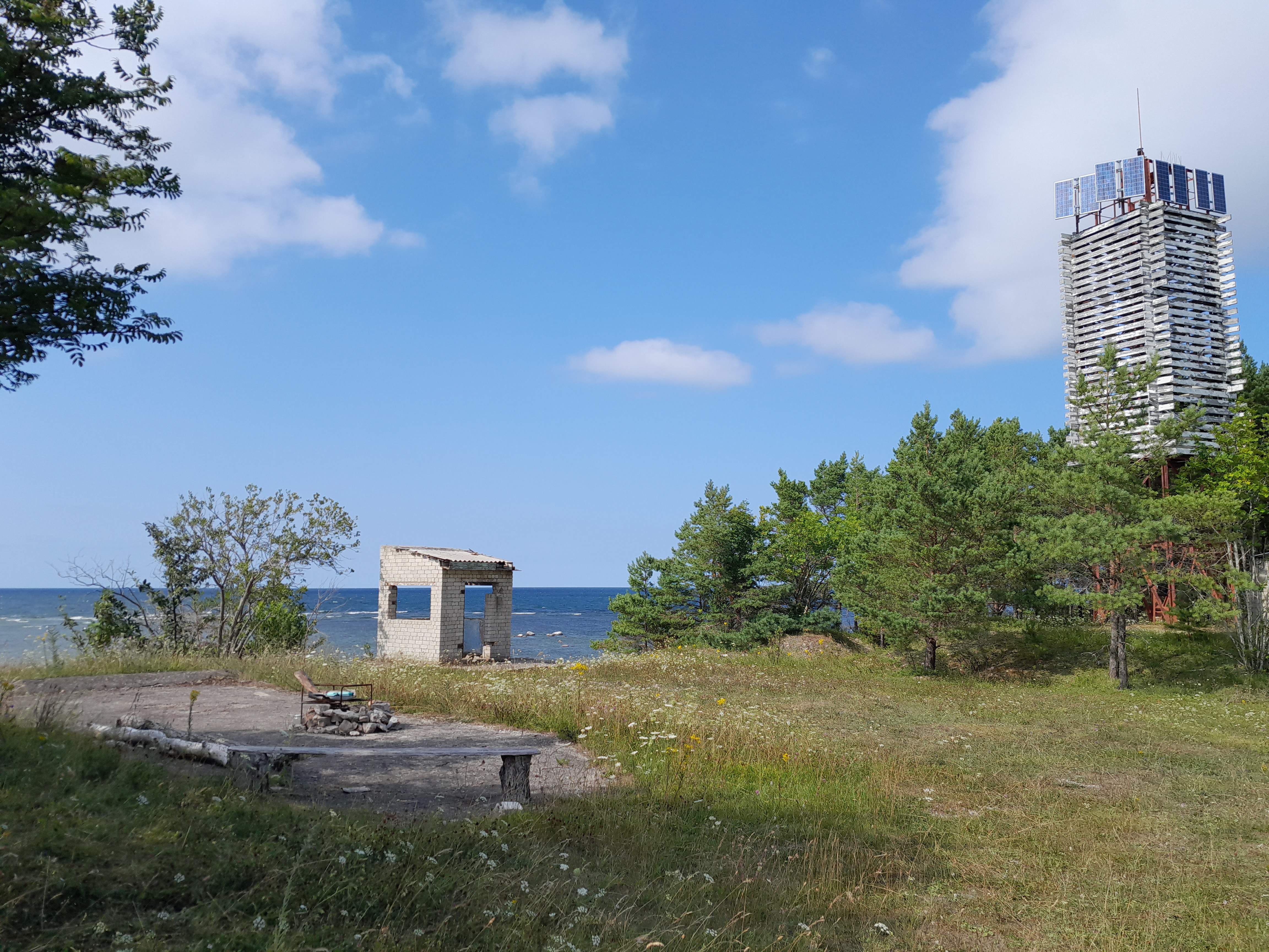Ja nii mu oma peas mõne aja möödudes Inva-TETiks ristitud sõit siis algaski. Aga kuna sõiduolud olid (õnneks!)üsna leebed, siis ega sellest erilist pildimaterjali siia pista polegi. Ning "stampkohtadega", nagu Panga pank, Kaali kraater või Sõrve tuletorn, ei hakka ka juttu venitama...küll aga teeks juttu pigem paarist võimalikust "privaatsemast" ööbimispaigast, mis endal silma jäi. Esiteks siis Koorunõmme LKA alal jäi Garminis TETi rajast pelgalt paarisaja meetri kaugusel silma miski Merise tuletorn, mis samas seal kuidagi RMK vms punktina märgitud polnud. Huvi pärast lubasingi siis selle pisku kõrvalepõike ja sattusin sellisesse kohta: