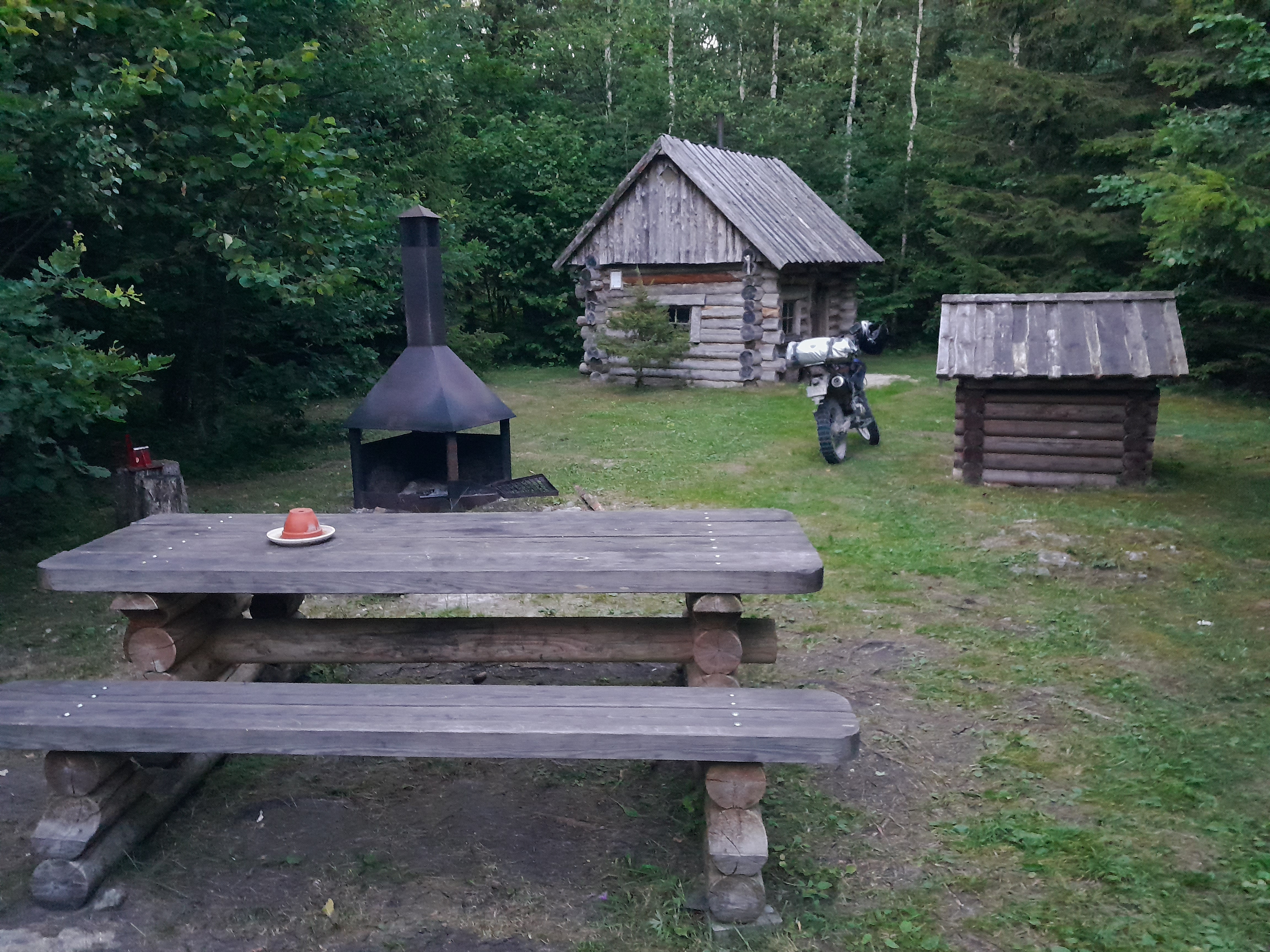 Ning teine koht, kus oli rõõm juba endalgi ööbida, oli siis RMK Sopi metsaonn Sõrve sääres. No ma ei tea, totaalne "puhkekompleks" ikka- tulekoldega hoone lakapealsega, lavatsid, lauad, isegi soojad paksud tekid sees....siis puukuur, grillalaud ja -koht koos kõige vajaminevaga, igati puhas ja korras kuivkäimla, kaev...no ja kui see kõik veel tasuta tarbida on, pelgalt paarsada meetrit TETi trassist, siis mis sa hing veel ihkad!?