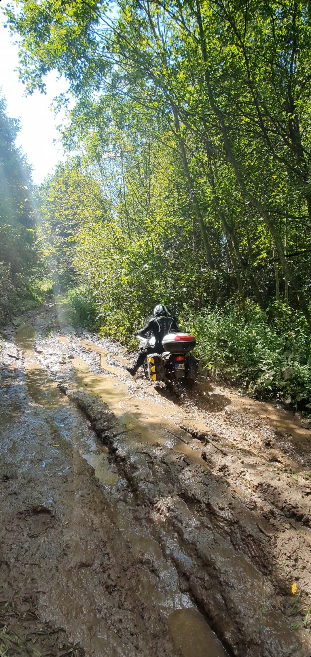 Muidugi kui see mudaväli ületatud saab siis ükskõik kust poolt tuled, keera ainult peale. Mina ei keeranud ja sinna ma jäingi, nina ülespoole ja tagumine ratas ringi mähkimas. Polnud isegi värskest E09-st abi.