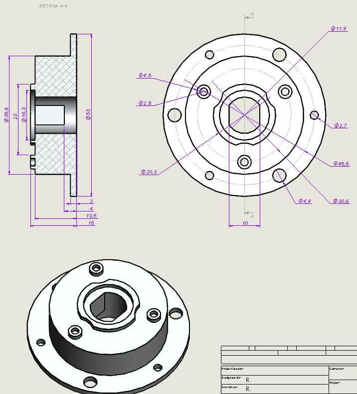 Üks detail on nagu siin joonisel, 15mm paks ja ülejäänud mõningad detailid on 10mm alumiiniumist lihtsamad detailid. 10mm alumiiniumi on mul omal olemas, paksemat veel pole leidnud. Kõik asjad saaks ära teha ühe paigaldusega ja vertikaalselt freesides.