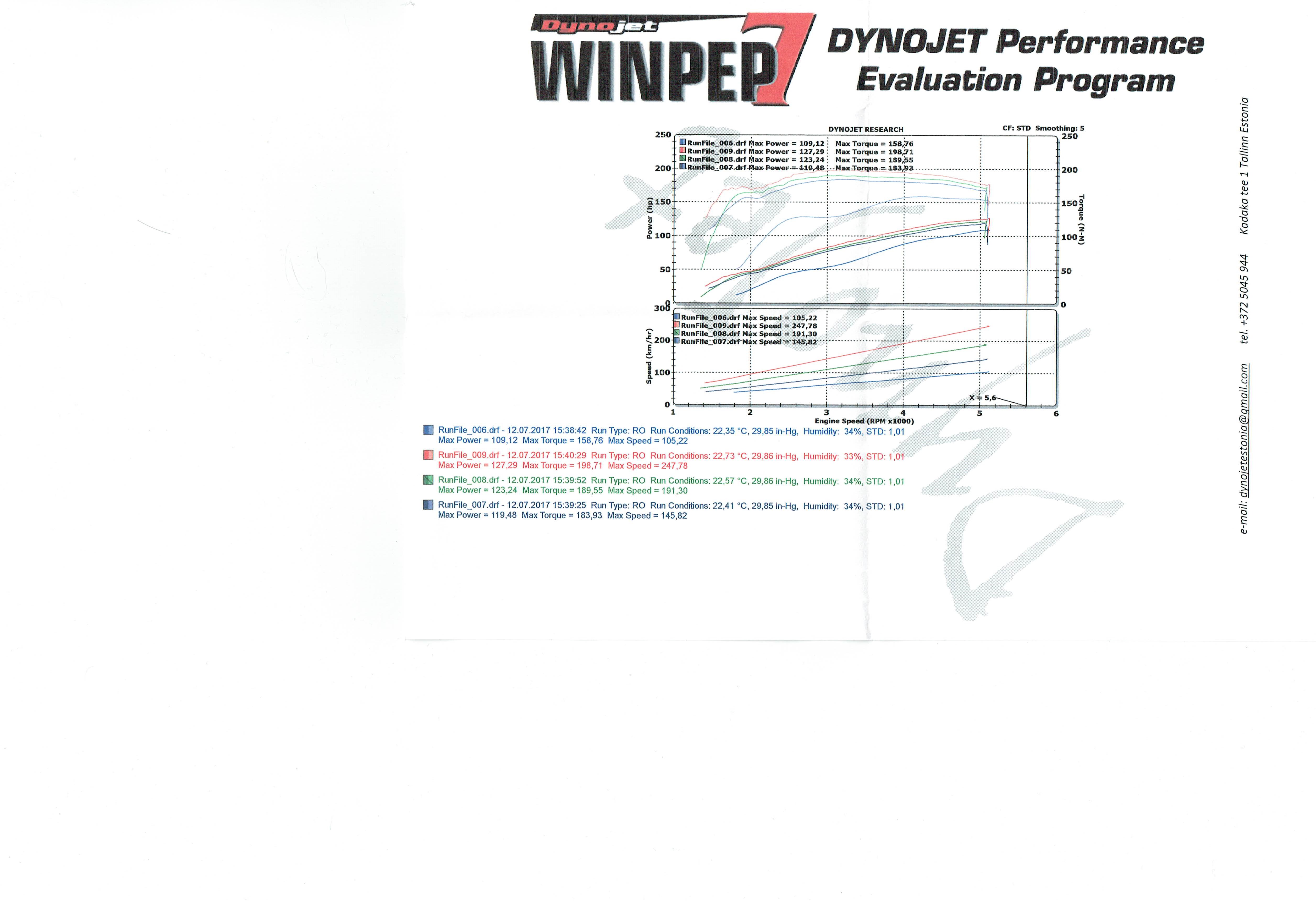 Küsimus teadjatele: palju 2l Kawa mootor pöördeid kannatab? Küsisin 5500 ja 5600p/min aga vist on liig, lendab laiali. Hetkel on 133,34HJ 4750p/min ja 218NM väänet. Üle 200NM on päris laias ulatuses.