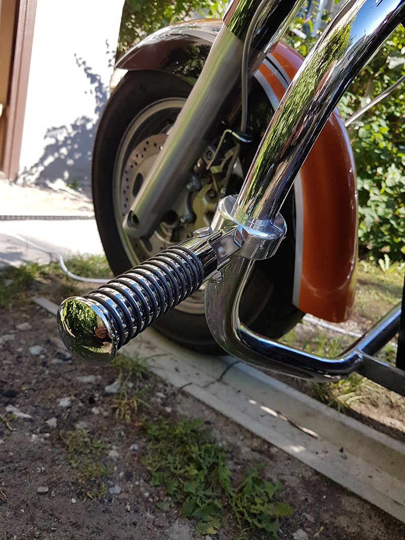 Ühe raske cruiseriga ei saa kasutada rinka masina sõidustiili, ülalolevas videos on see täpselt näha. Peab teadma palju saab, õigemini palju tsikkel lubab minna kaldesse. Originaalid olid terasest rasked junnid (väliselt nagu malm aga ikkagi mingi raualaadne ollus), jalaplaatide kallutamist on suurendatud max. lisaks on tahapoole toodud. Originaalid ei saanud isegi teoreetiliselt teega puutesse minna....miks neid siis vaja? Deflon puutetapid nüüd tõesti puutuvad esimesena ja kohe seejäel mingi raamiosa. Eks tuleb katta poleeritud RV-ga, välimus ka loeb.