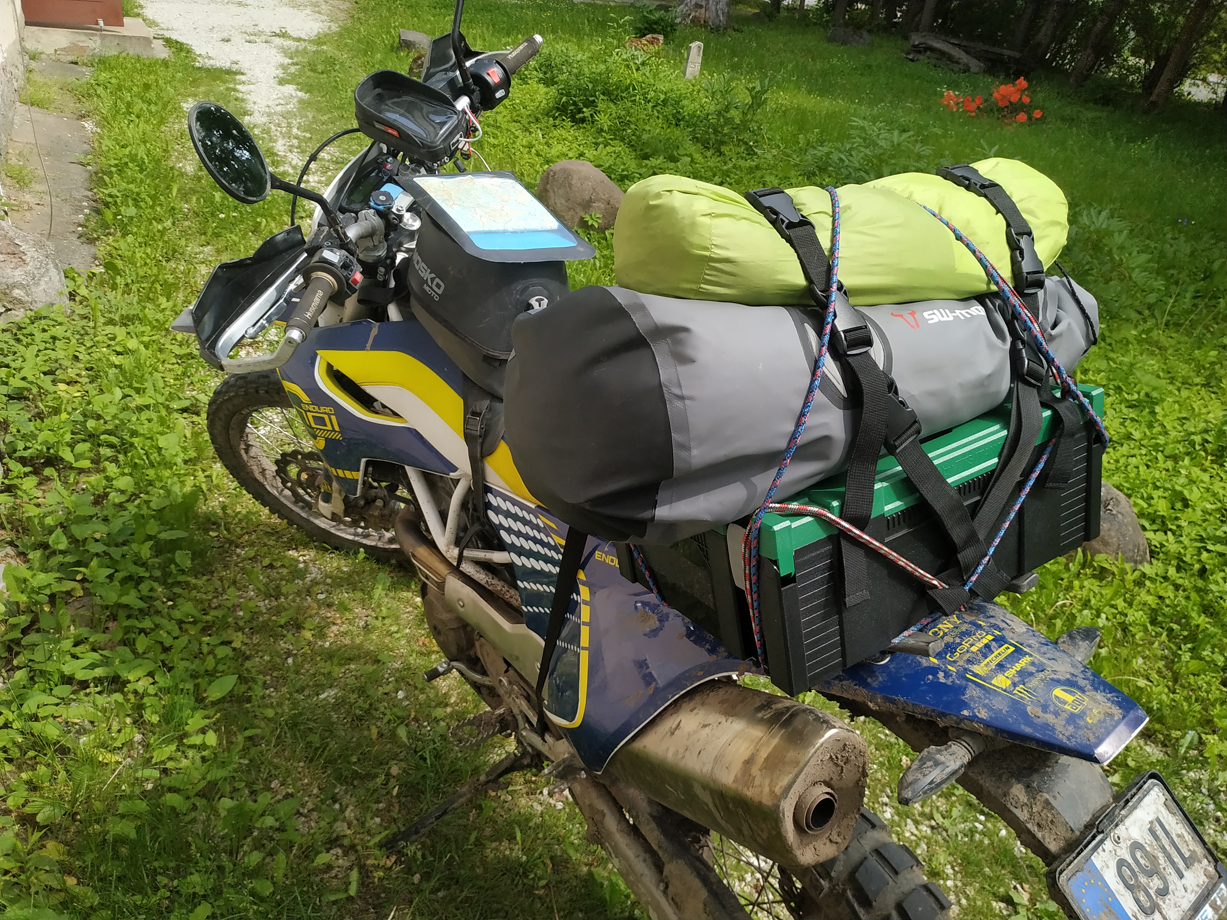 Kriega OS-36 kombo. Loodetavasti püsib sulamata. Kinnitatud sai väga prosta lahendusega, kus koormarihmaga sai Kriega konkse haagitud.