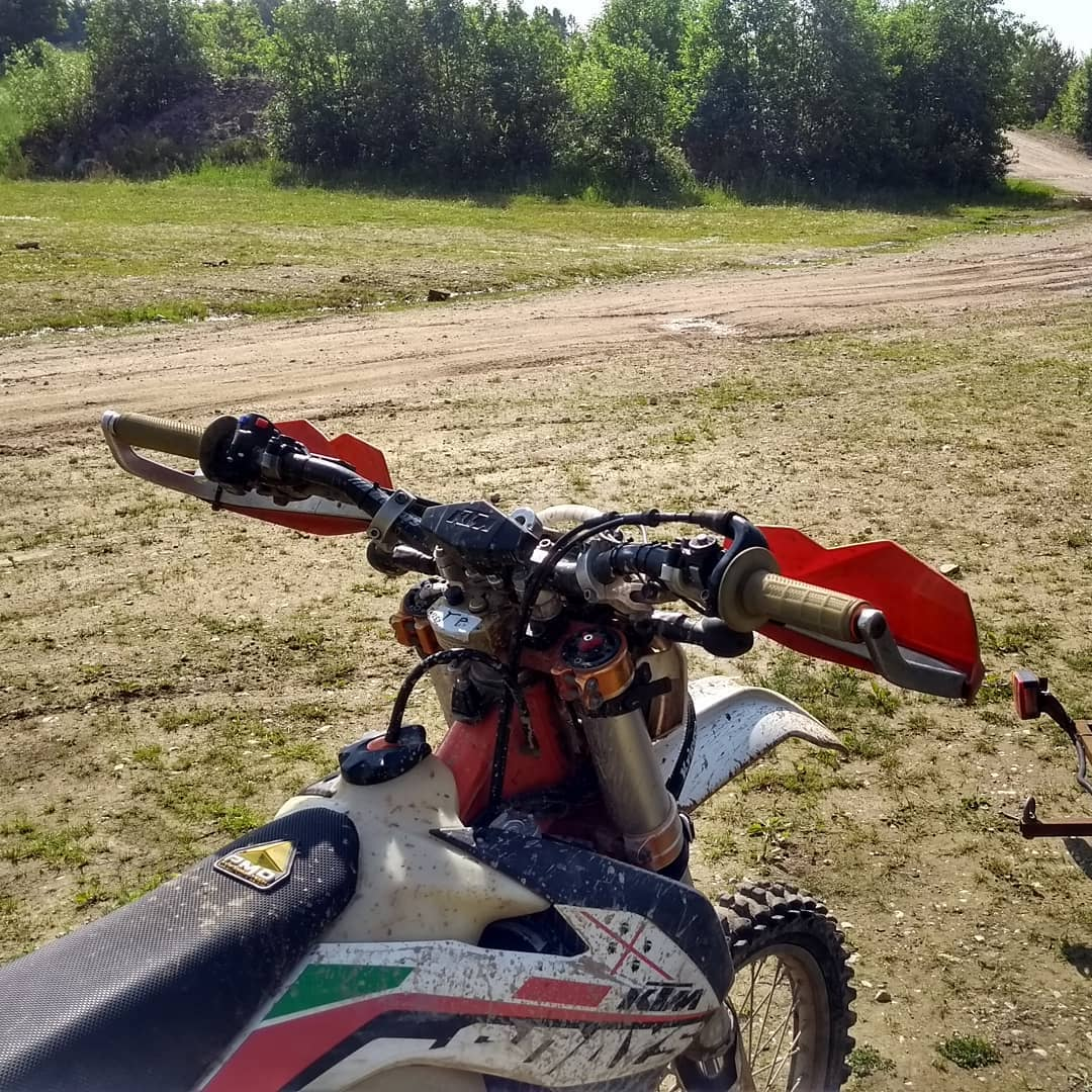 Plaan jah mitte raskused vaid eelmisel lenksul olnud Acerbise käekaitsmed peale kruvida. Neil küll seda metallraami pole aga tunduvad olevat sellisest paksemast plastikust. Ja kinnituvad kahest kohast juhtraua külge. Abiks ikka. Vähemalt okste ja tuule eest.