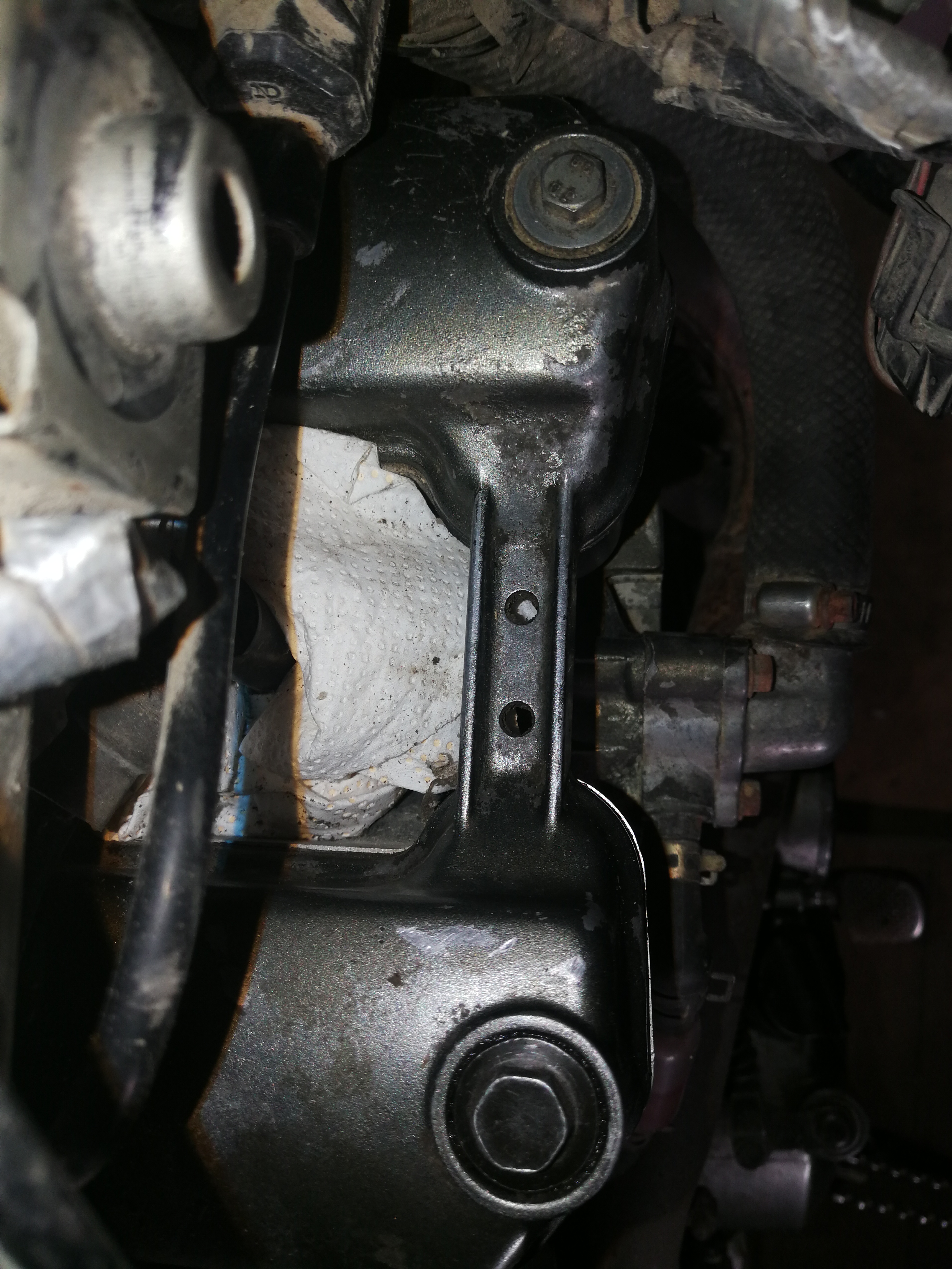 Ja avastasin, et mootori...mis asi see on...plokikaan? on kinni tõmmatud täiesti suvaliste poltidega. Kõik neli on erinevad. Ja üks neist tundub olevat originaal.