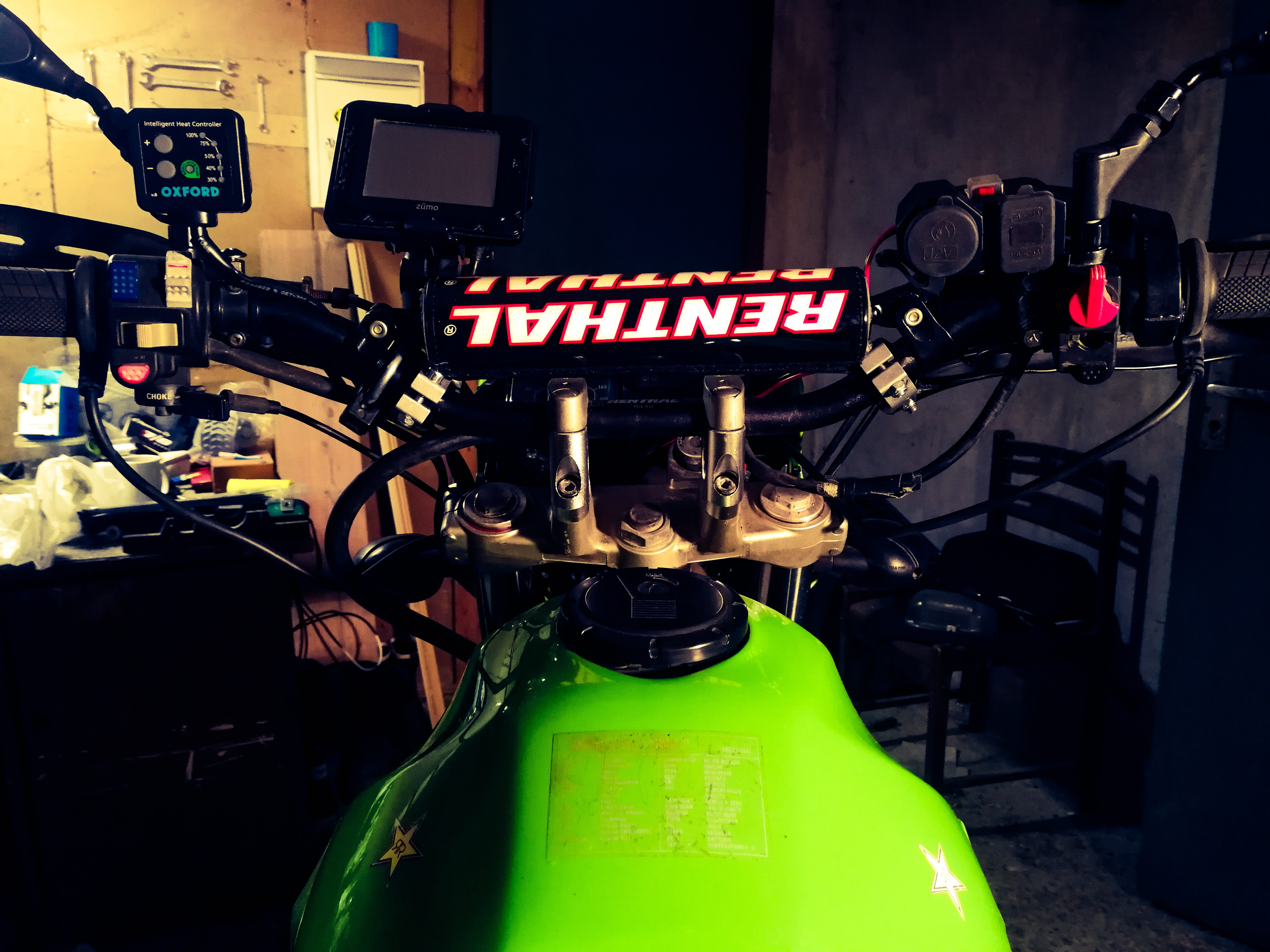 A selle eest on nüüd lenks varustatud rutskasoojenduste ja kahe telefonilaadijapesa plus 12 V pesaga. Eelmisel suvel Eestis ringi reisides oli mul tundide kaupa bensukas passides ja telefoni laadides aega pikalt mõelda selle üle kas rattale on vaja telefonilaadijat või jah. Käekaitsmed õnnestus kah kenasti kinnitada tänu nendele uutele kinnitustele. Tänud soovitamast!