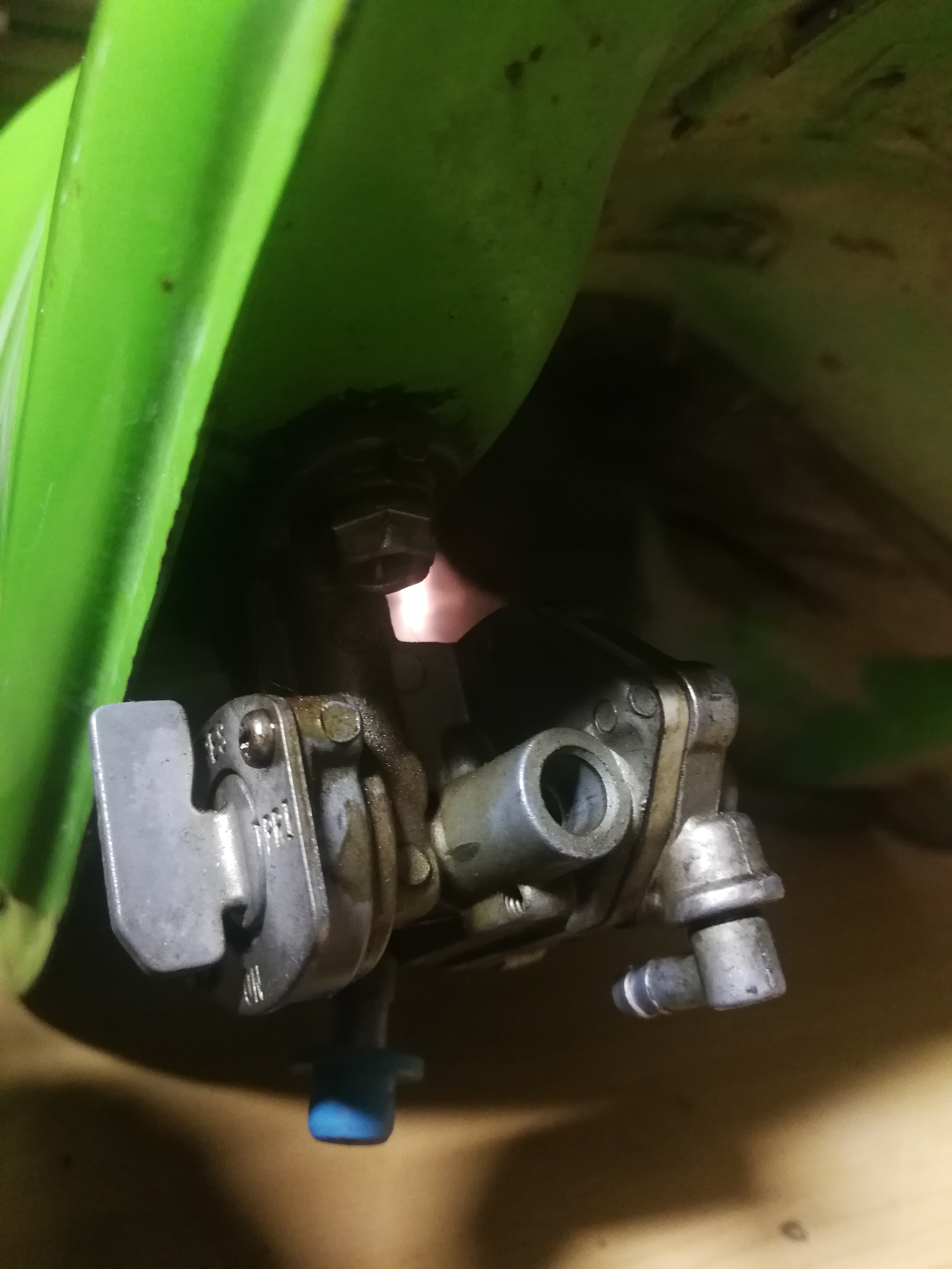 Ahjaa...ja siis, paagi lauale tõstnud, avastasin et bensu kraan lekib. Teadsin siiani, et see lekib ükskõik millises muus asendis kui RESERV ja mitte vaikselt vaid niriseb läbi kraani kütet välja. A mõtlesin et kiiret pole selle vahetusega, et sõidan reserv asendis. A nüüd siis jah, selgus et ka reservasendis immitseb kraanist kergelt kütust sellest torust kuhu bensu voolik kinnitatakse.