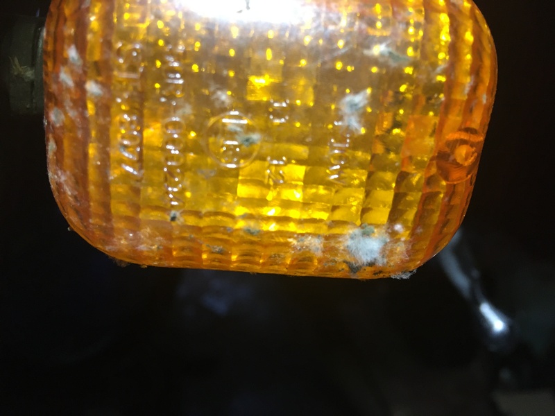 Mul on väljas plekkgaraažis vist nii võimas niiskus, et isegi suunatuli on hallitama hakanud.