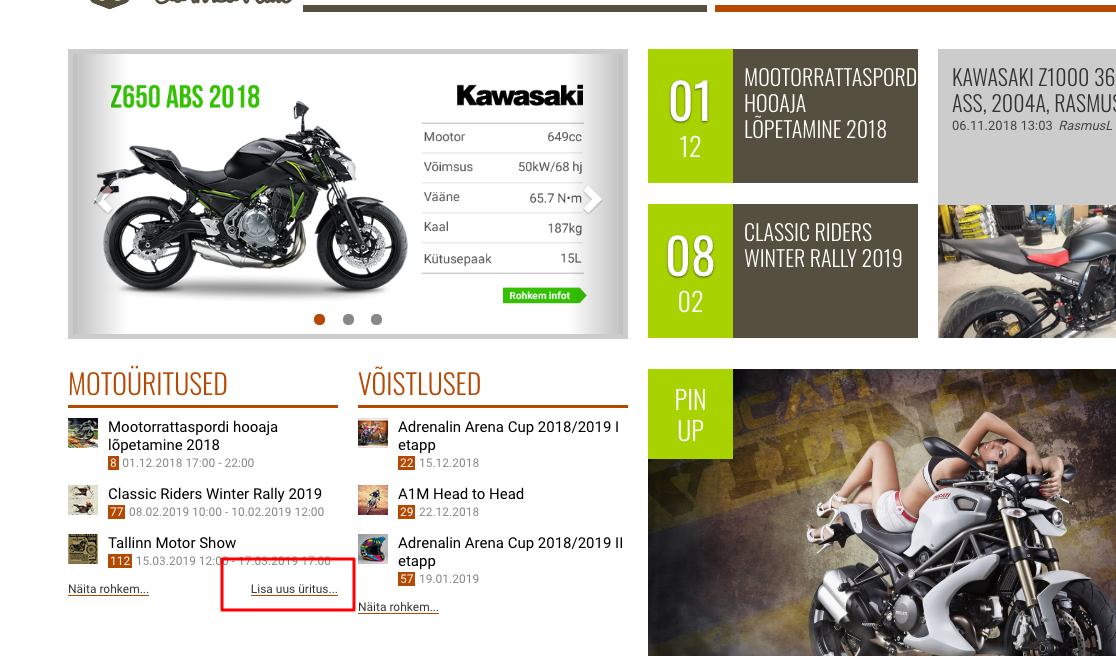 Nii, head üritusekorraldajad, palun oma üritsued siia teemasse või veel parem otse bikeri kalendrisse kirja panna panna. Miks see hea on? Esiteks tekib võimalus, et keegi sinu üritusele ka päriselt tuleb. Seda esiteks, teiseks on mitmed kalendritegijad avaldnud soovi mototeemalisi kalendreid teha ja küsivad kuupäevi. Ja need kes oma üritused kirja panevad sinna ka suure tõenäosusega satuvad.