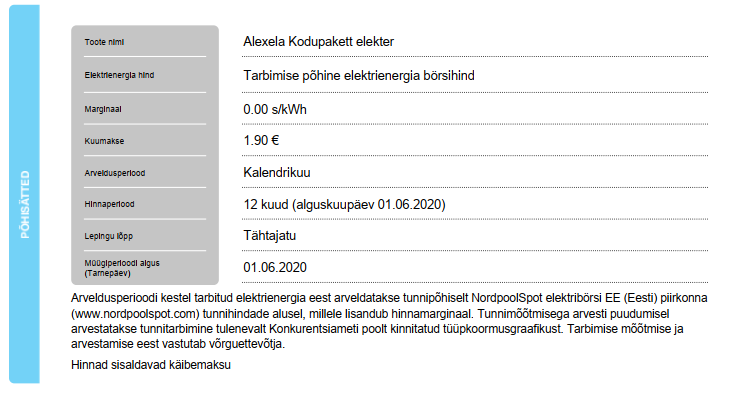 Peale Alexelaga lepingu sõlmimist tuli EE-lt pakkumine "tunnipõhine hind + marginaal 0,12 s/kWh". Ilma kuutasuta.